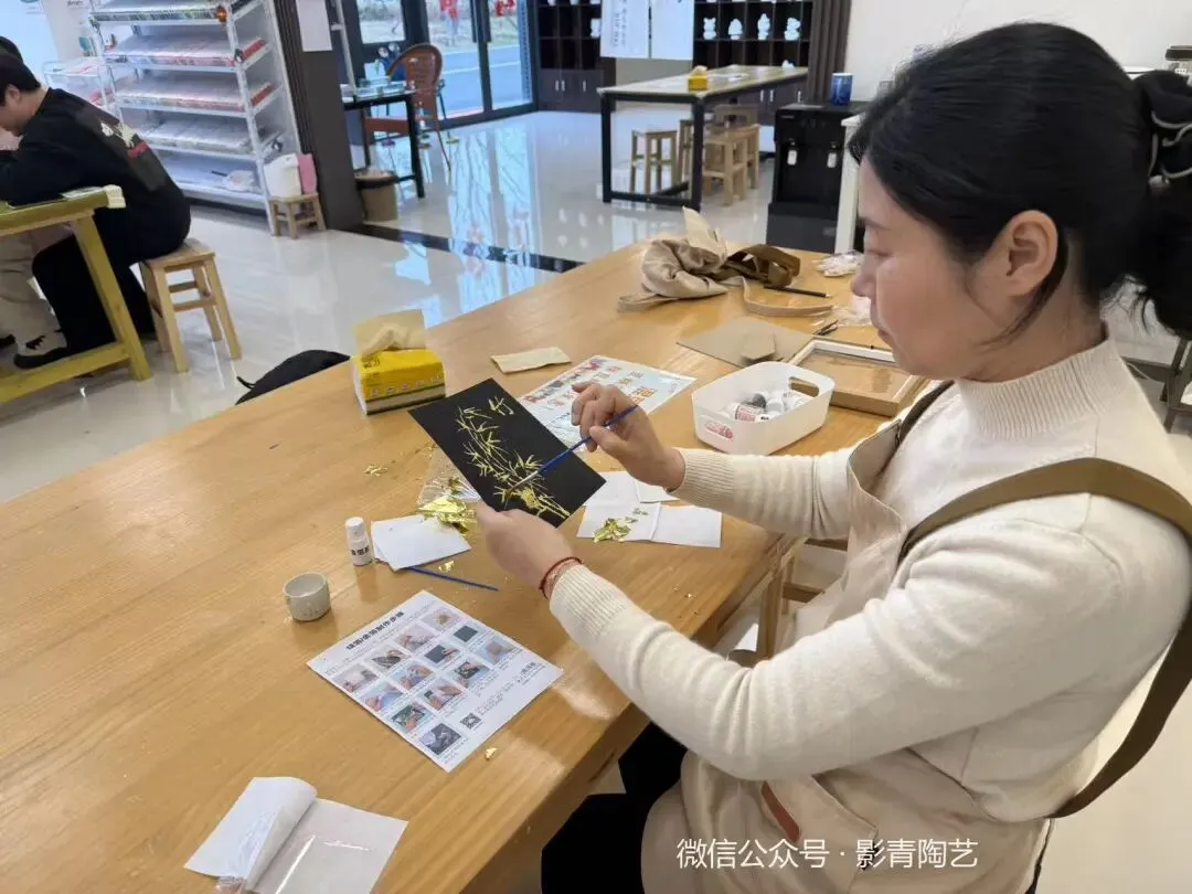 宋锦小马精致可爱,金箔画则闪耀着耀眼的光泽,两者结合,既有传统韵味,又不失现代美感。陶艺成品做出来更是成就感满满