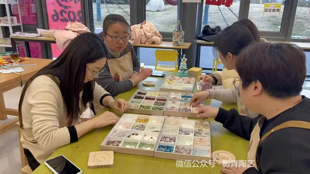 有人挑战手工葡萄皂,有人尝试金箔画,还有人迷上了串珠……大家沉浸在手作的乐趣中,欢声笑语不断。