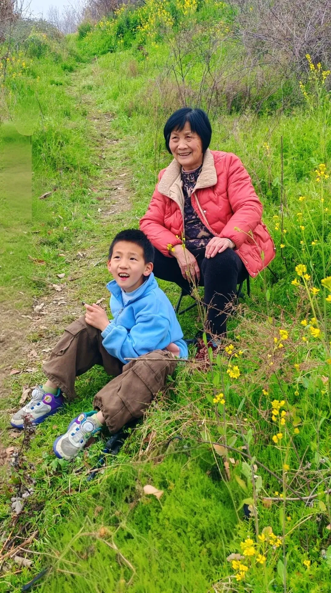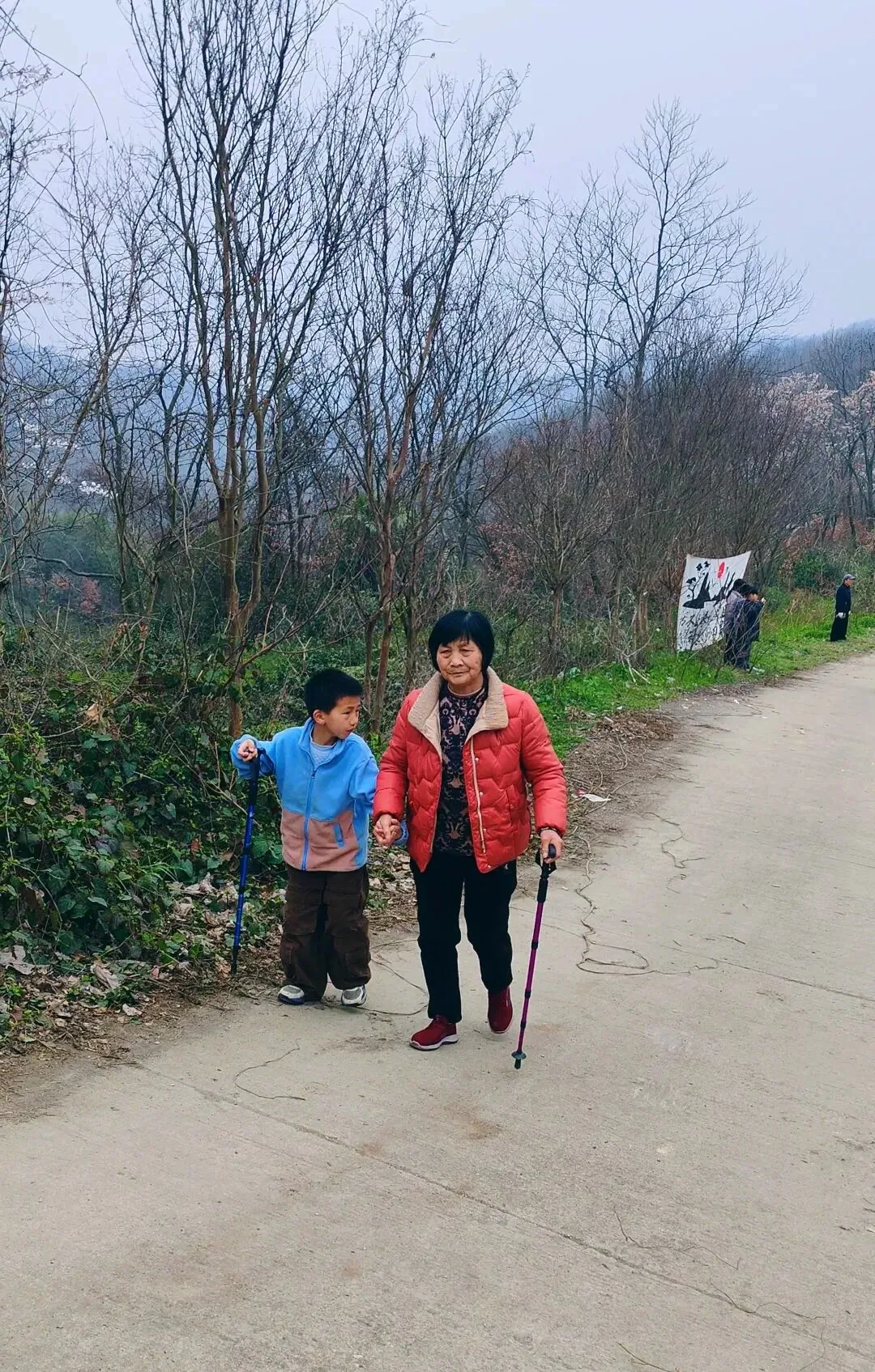 我走在最后面,看着他们俩的背影:一个70岁,一个九岁。一个走得慢,一个爱蹦跶。