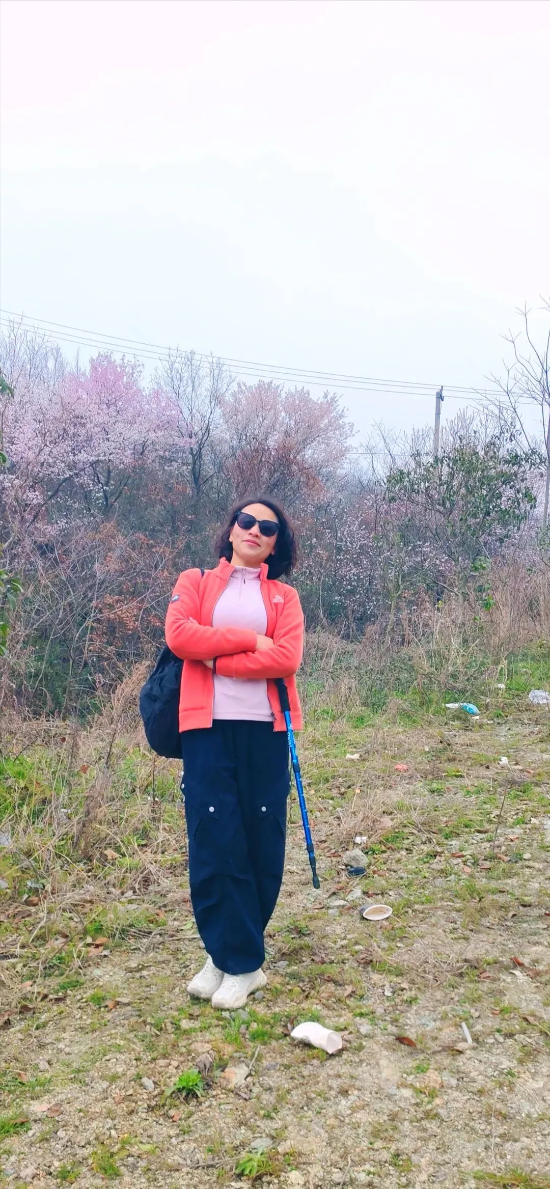 但也挺好——这漫山遍野的樱花,我们可以一边走一边观赏。