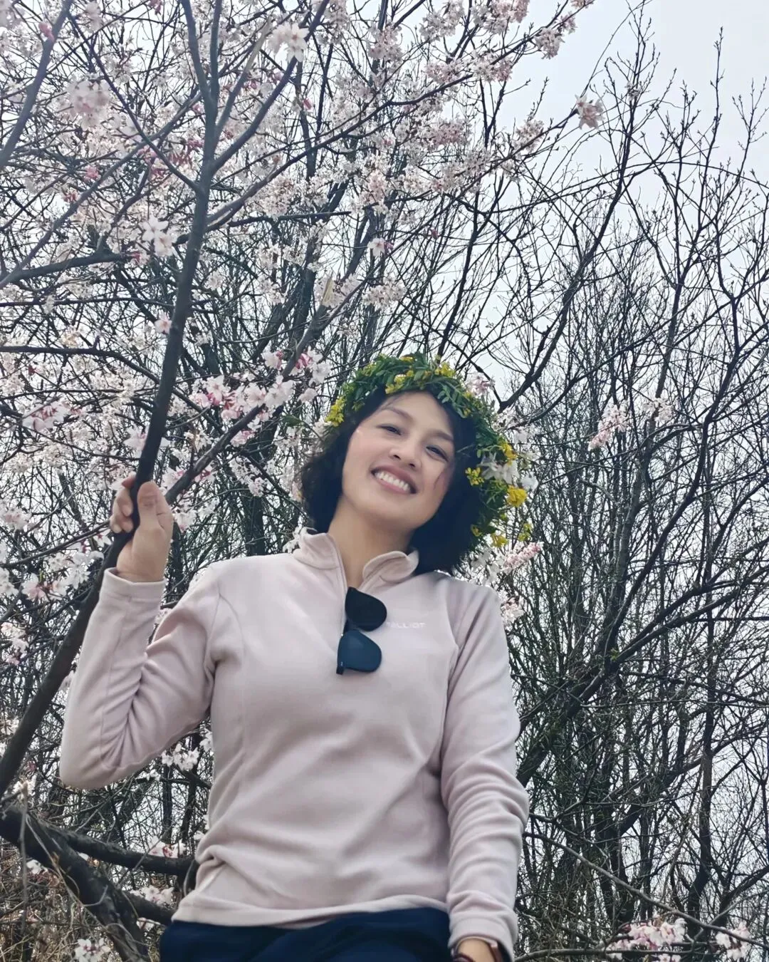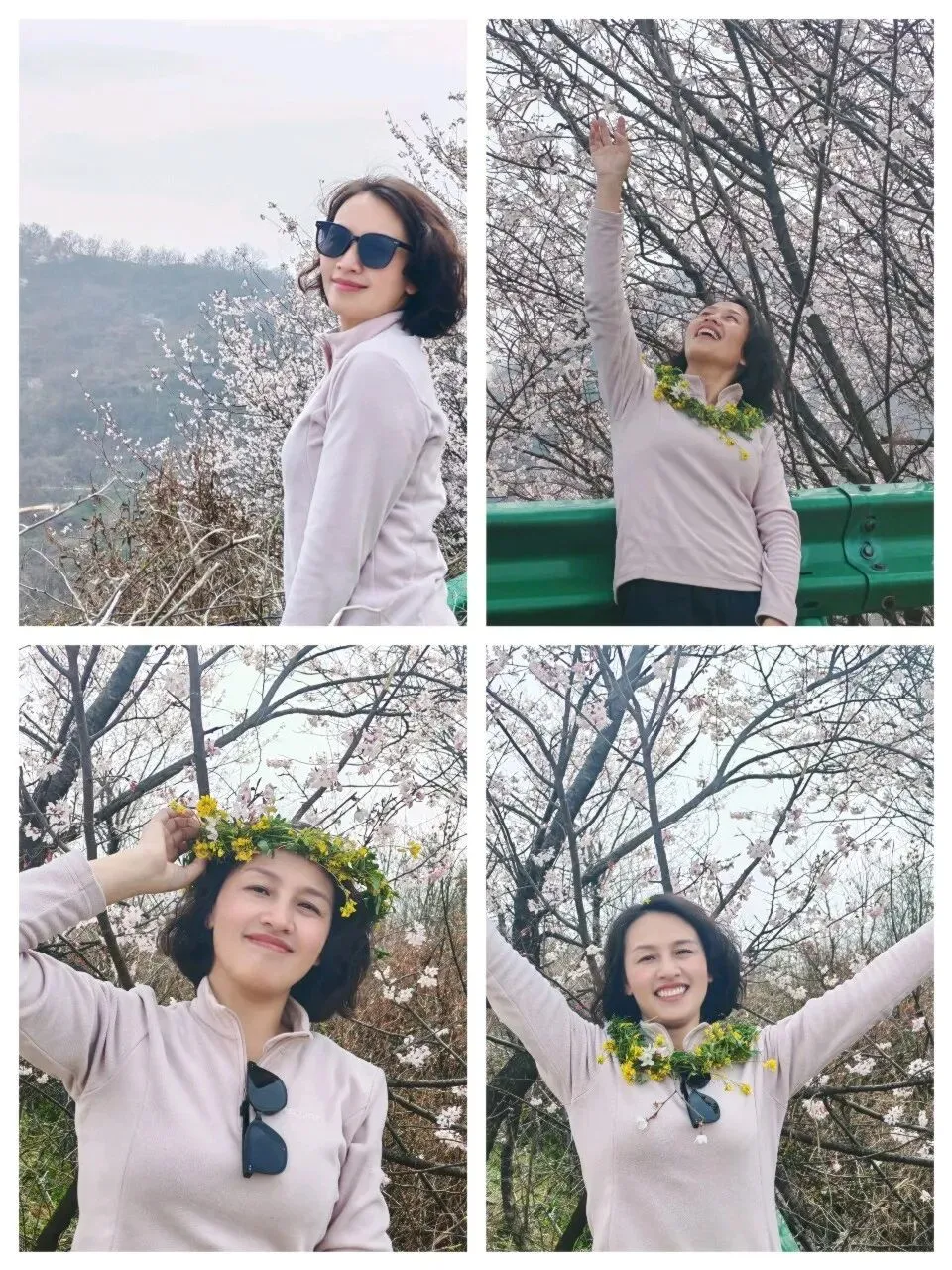 旁边的人看我们拍得热闹,也跟着学起来。一时间,那棵樱花树下,全是笑得灿烂的女人。