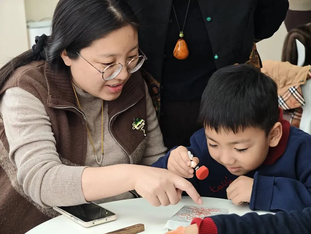 有的印着“平安”,有的印着“喜乐”,有个小朋友印歪了三次,最终收获了一个独特的“福”。