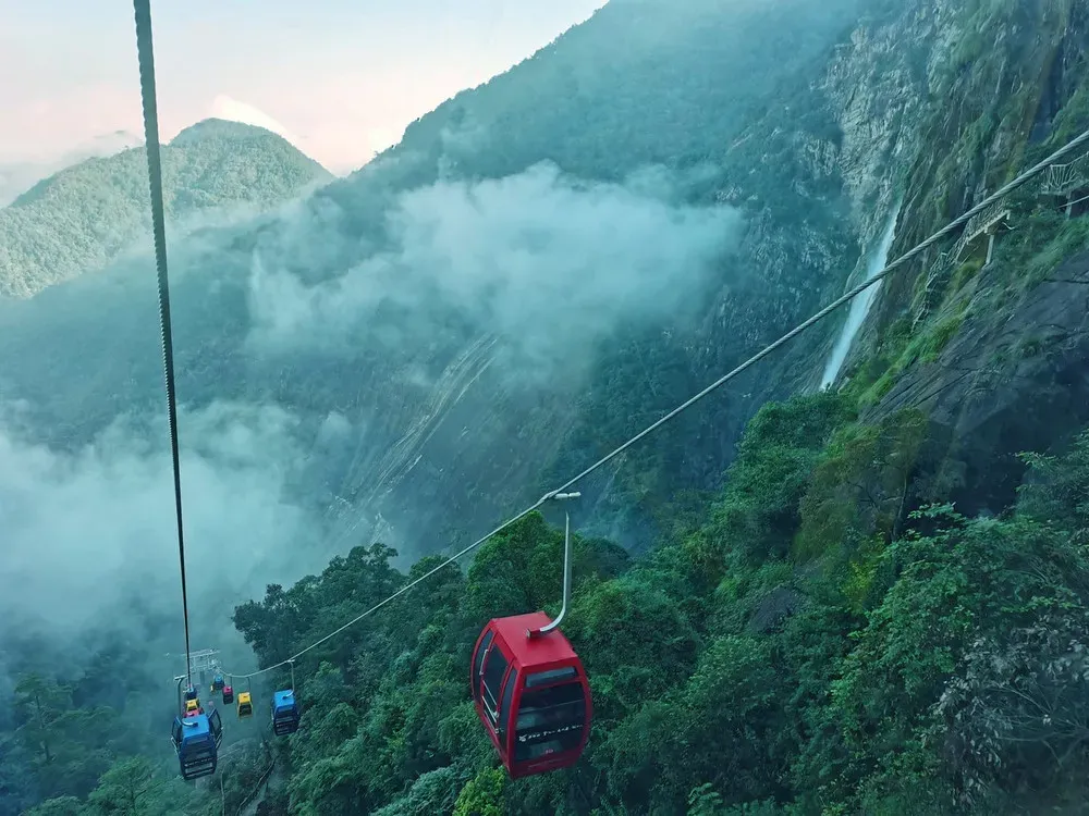 石牛山索道全程7.2千米,中国第二、华东第一长索道,沿途穿越石牛山的古朴村落、森林和竹海,可以俯瞰岱仙瀑布,景色壮观,极为震撼,全程大概半个小时。石牛山索道将原有的岱仙瀑布景区和石牛山景区连接成为一个大景区。游客可由索道下站搭乘索道在中间站下车前往游览岱仙瀑布和体验具有321米落差以及52米悬挑长度的玻璃观景平台,也可以直接乘坐索道直达上站去参观千年古刹石壶祖殿和登顶石牛山主峰。