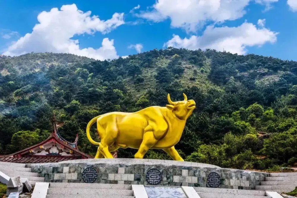 石壶祖殿左侧小山坡上铸有一尊福运金牛,绕金牛转三圈即可完成“扭转乾坤”的祈福仪式。是游客打卡必来之地。