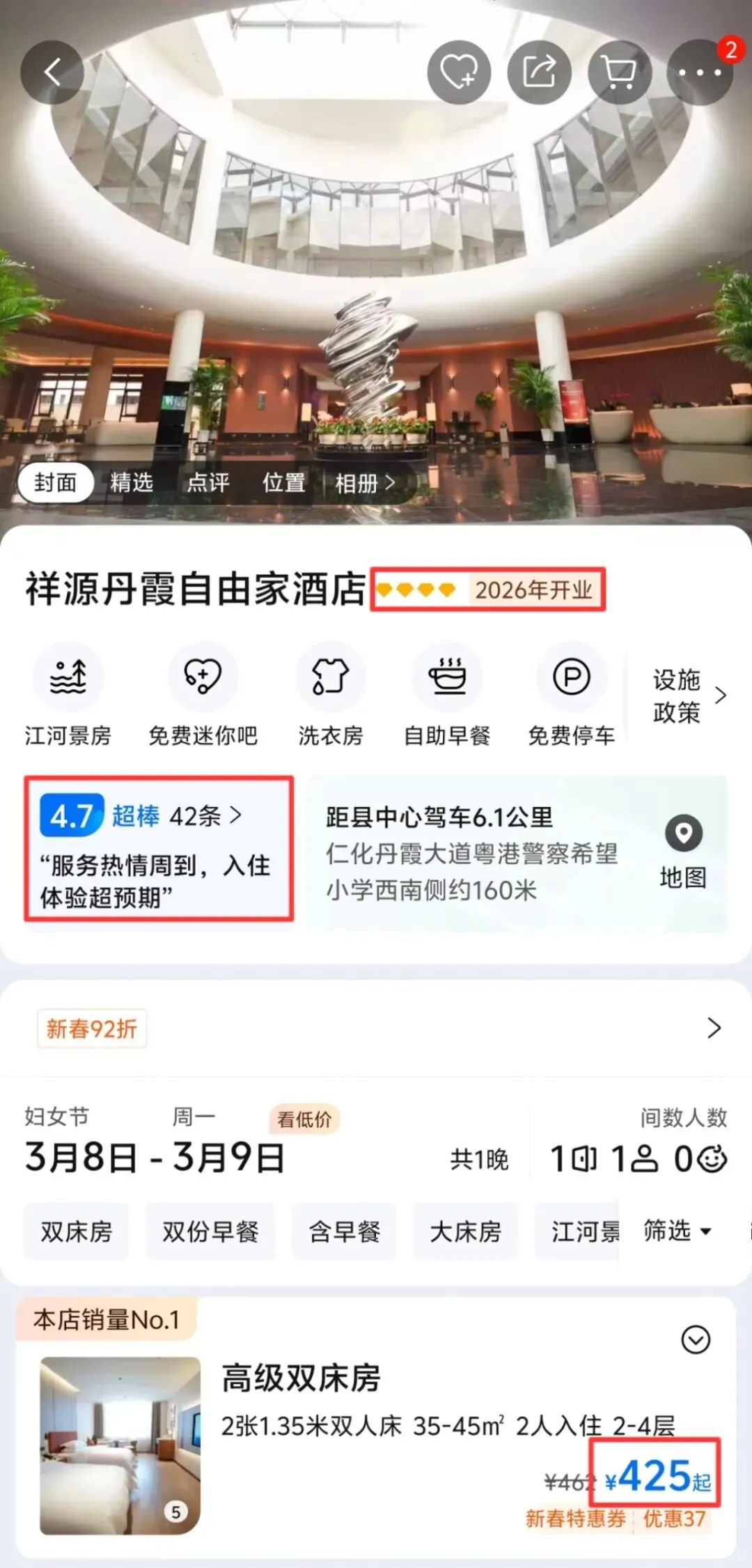 1晚全新祥源丹霞自由家酒店
