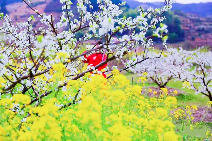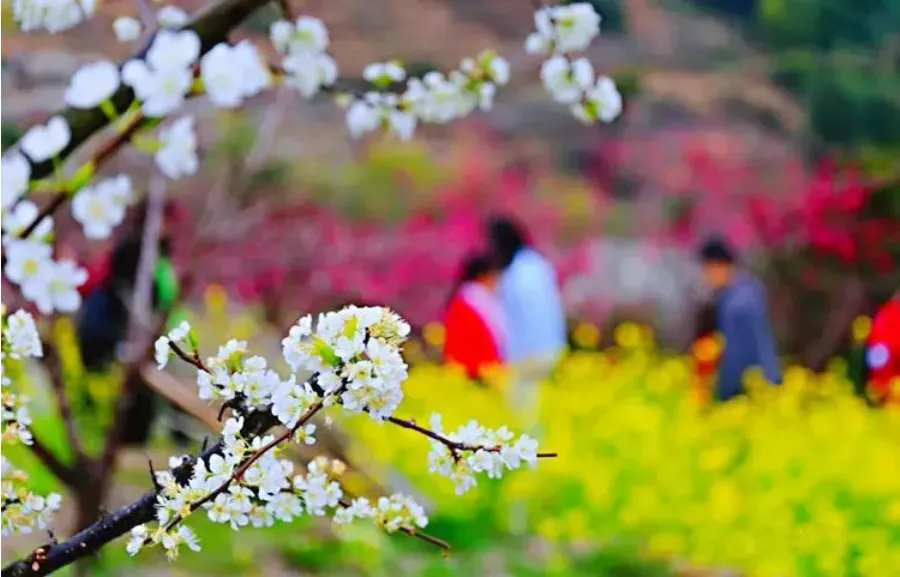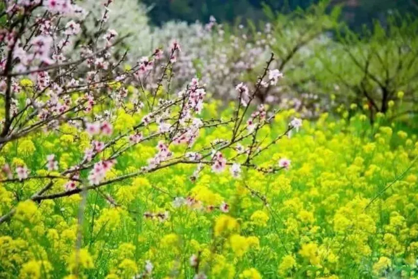 九峰山汇集了桃花、李花、油菜花