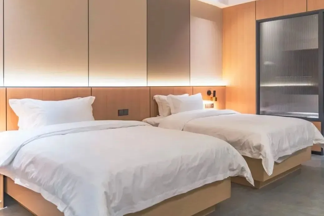 房间宽敞明亮,暖色灯饰柔和