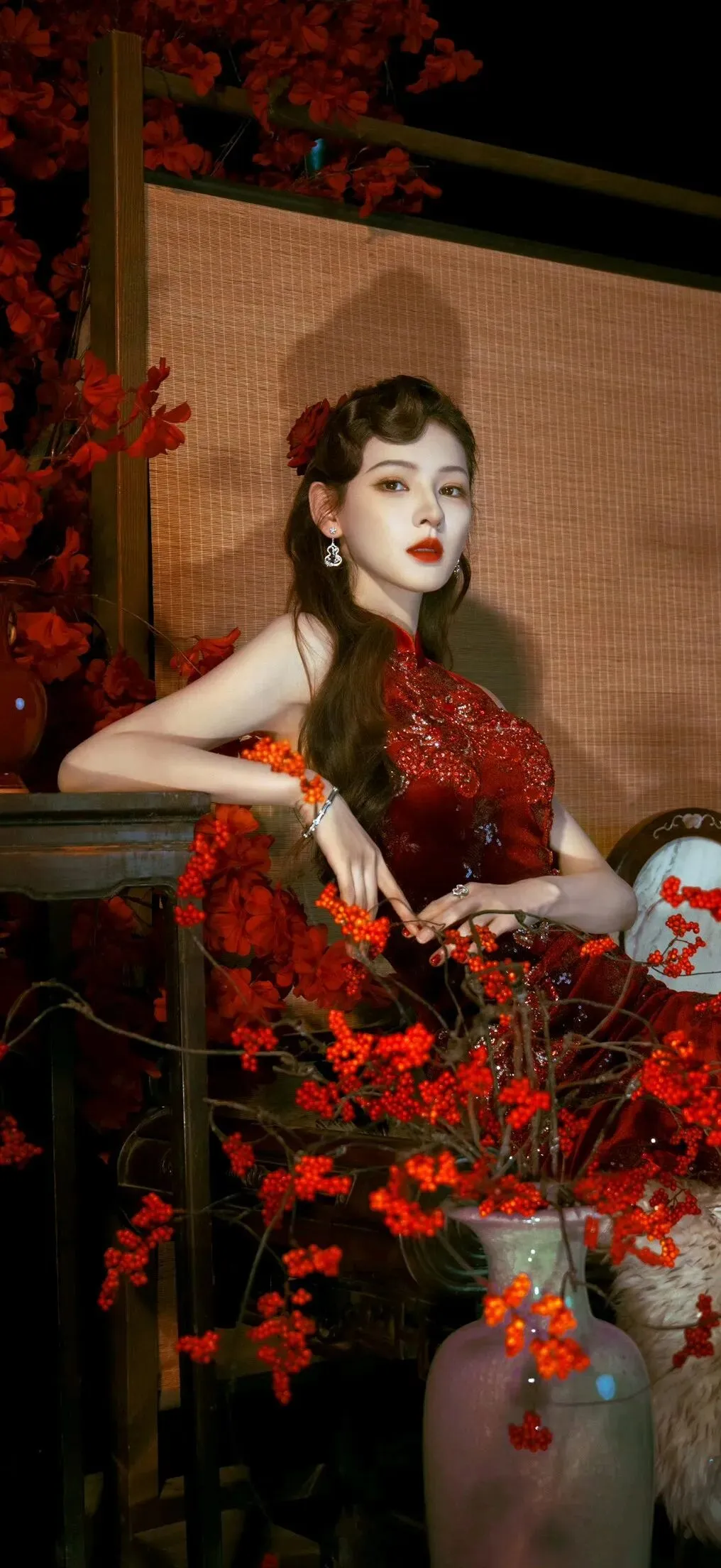 没有过度的修饰,仅凭色彩与线条的碰撞,便打造出壁纸级的视觉效果,既适合作为新春时节的氛围感大片,也尽显中式穿搭的高级感。