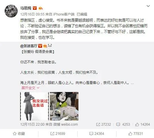 微博时代,她的犀利言论被做成金句合集,被网友疯狂转发,哪怕其中有七八成都是他人杜撰,另外一两成,则被断章取义,过度解读…