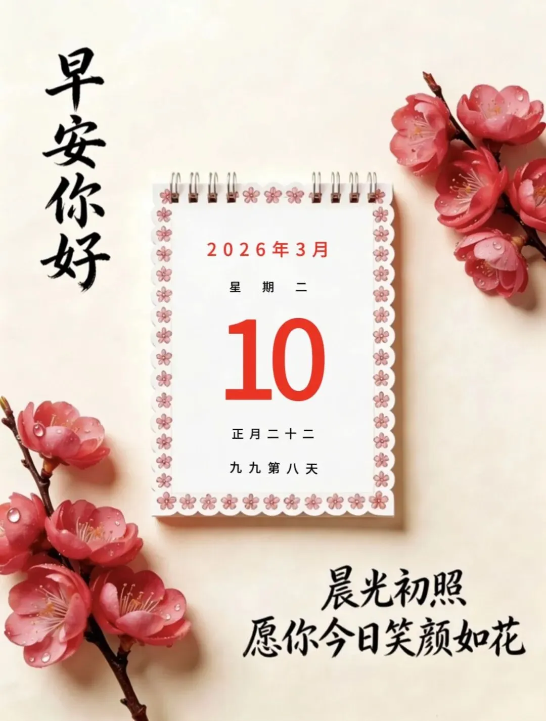 当前位置:首页>美女资讯>早安日历 | 今天是2026年3月10日农历正月廿二,周二愉快!高清壁纸~
