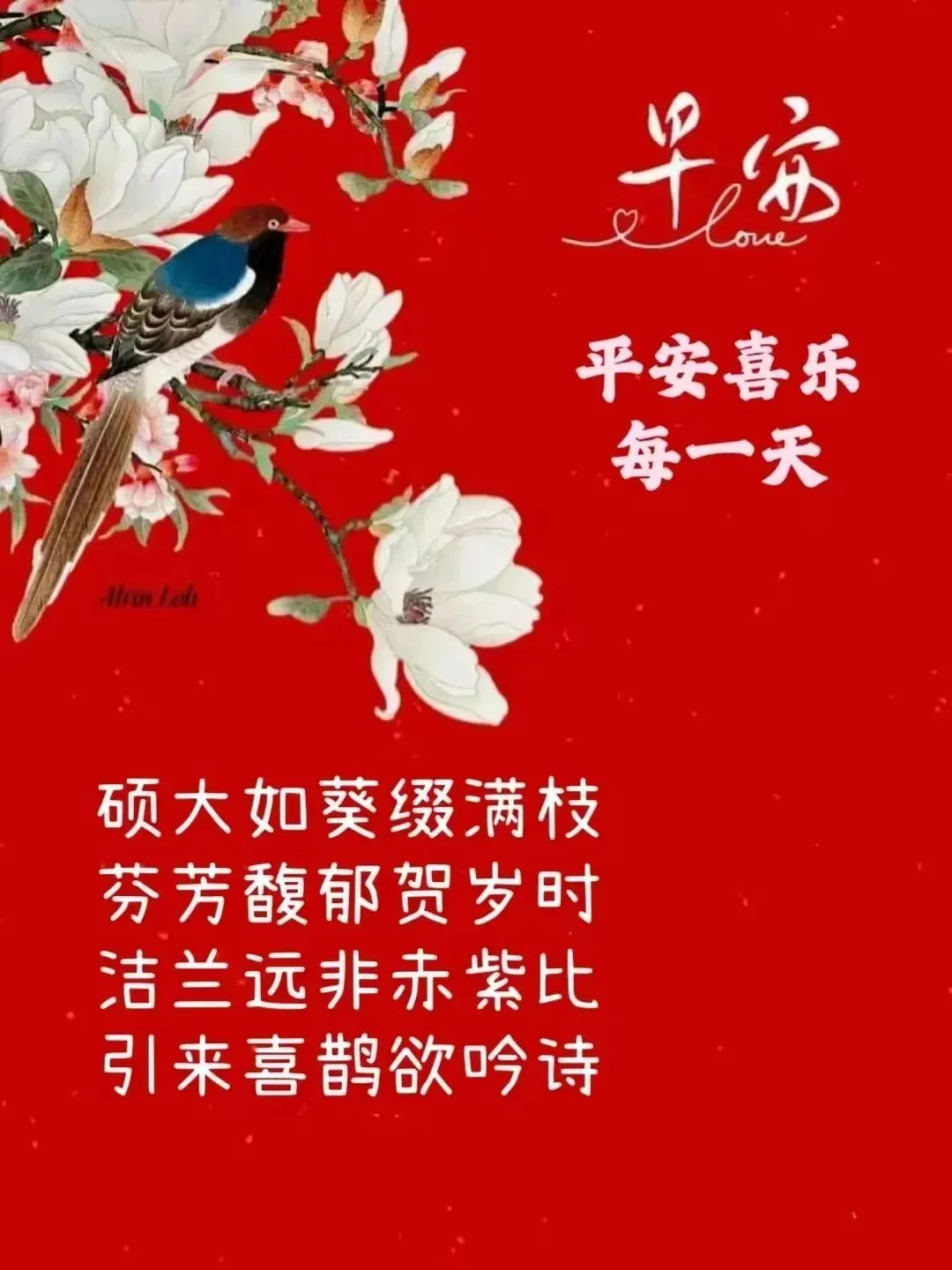 2、清晨的雨露清澈透明,多事的蝉儿热闹的鸣唱,欢快的喜鹊掩饰不住心中的喜悦,可人的小麻雀也叽叽喳喳,原来你醒了,轻轻的问候一声:祝你。早安开心一整天。早安!