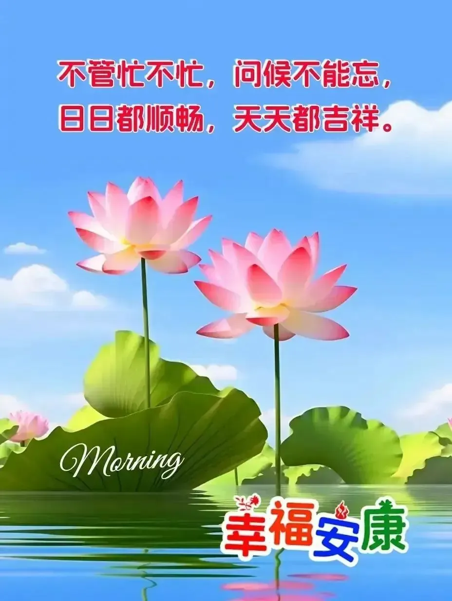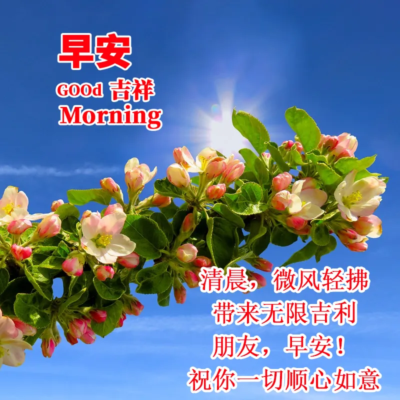4、每天清晨问个好,活跃心情健大脑。吉言妙语虽不多,加深情意防衰老。伴随时光度日月,笑对生活每一秒。朋友们早上好!晨安吉祥!