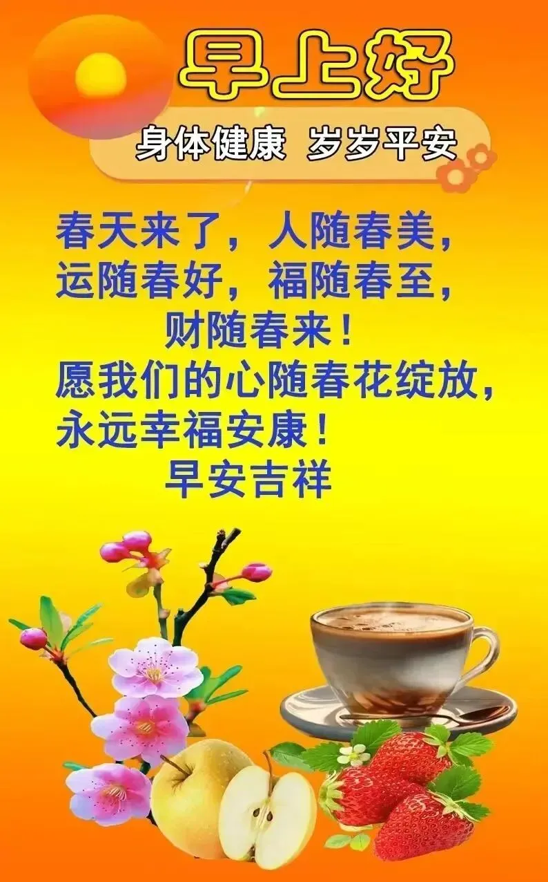 18,一个祝福,让人沐浴春辉;一句善语,让人暖在心底;一声问候,让人气爽神怡。美好的一天从亲切的问候开始。平安吉祥!早上好!