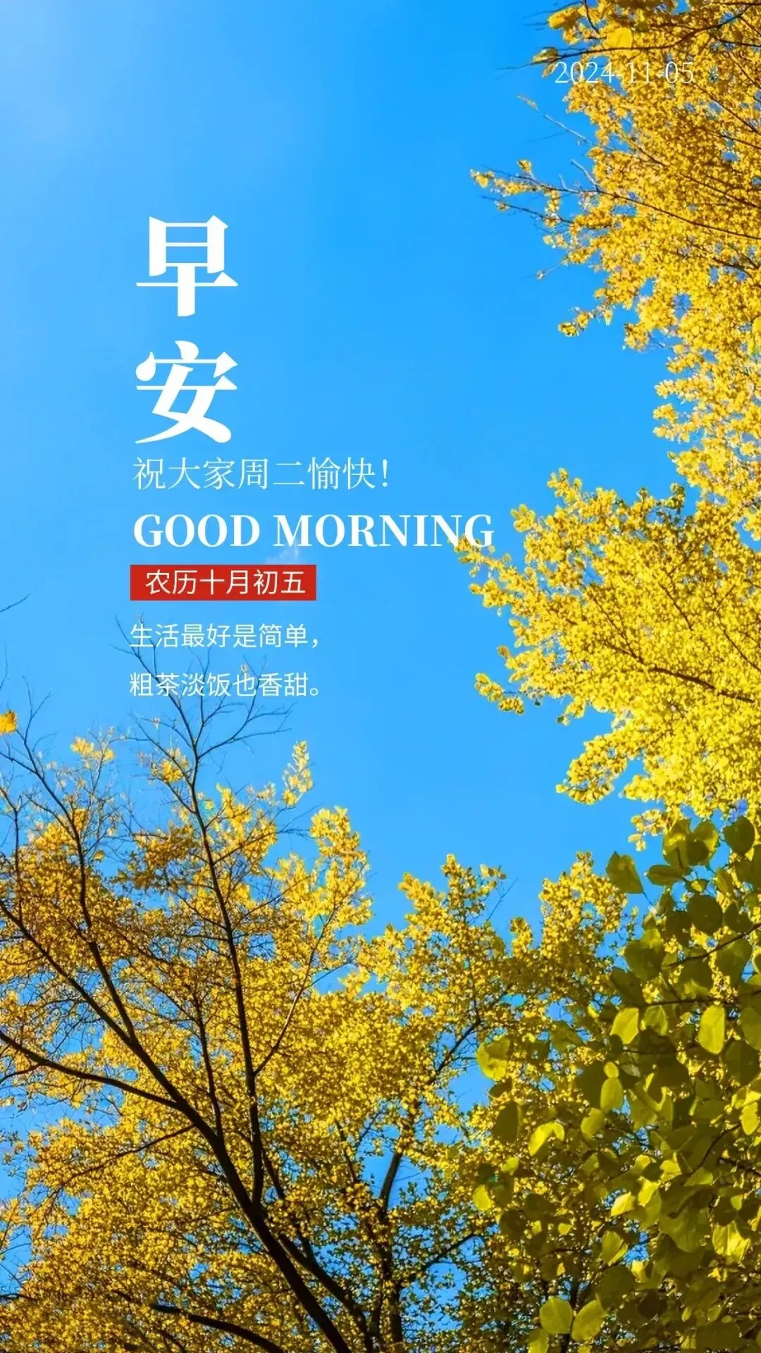 5,其实幸福很简单,身体健健康康,家人平平安安,孩子快快乐乐,工作顺顺利利,没有不幸福,只有不知足,殊不知很多人其实在羡慕你,你已经拥有很多,再要就是贪心。早上好~!