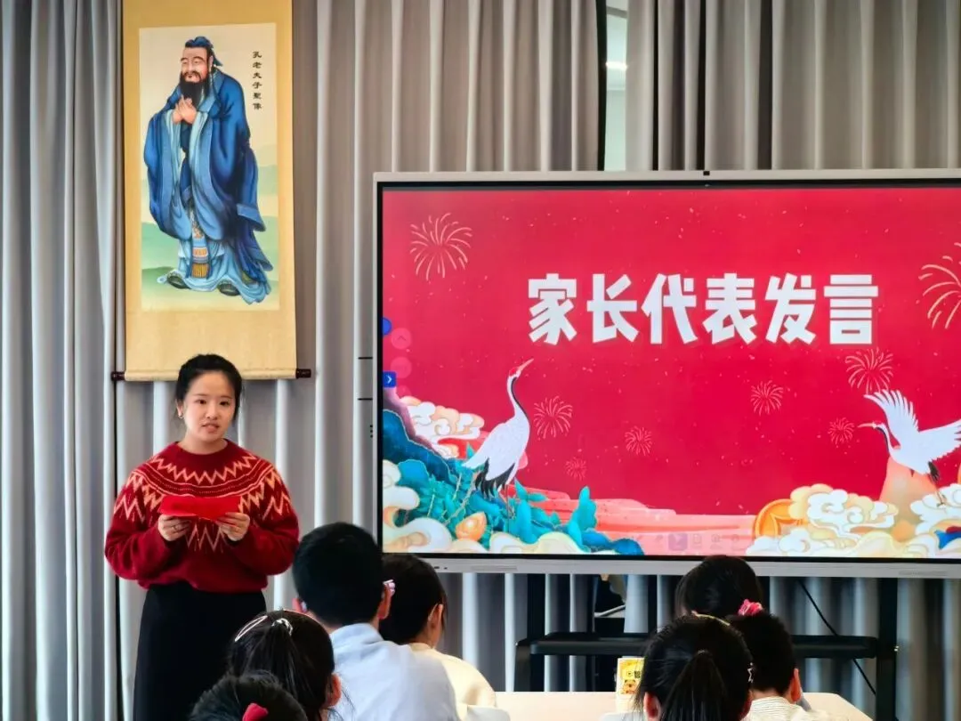 家校携手,共育良才。“国学是孩子成长的根基,陪伴是父母最长情的告白。”孩子的成长离不开家庭的温暖陪伴;班级的进步离不开家长的默默支持。家长代表沈利芳女士、夏之莲女士的发言,满含深情,字字入心。首先向辛勤付出的老师们致以衷心感谢,随后分享了家庭教育中陪伴孩子学习国学的点滴。家长代表娓娓道来,见证孩子在浦江学堂的蜕变与成长,感恩学堂提供的优质公益国学平台,承诺继续陪伴孩子坚持学习,以家风滋养学风,与学堂同向同行。