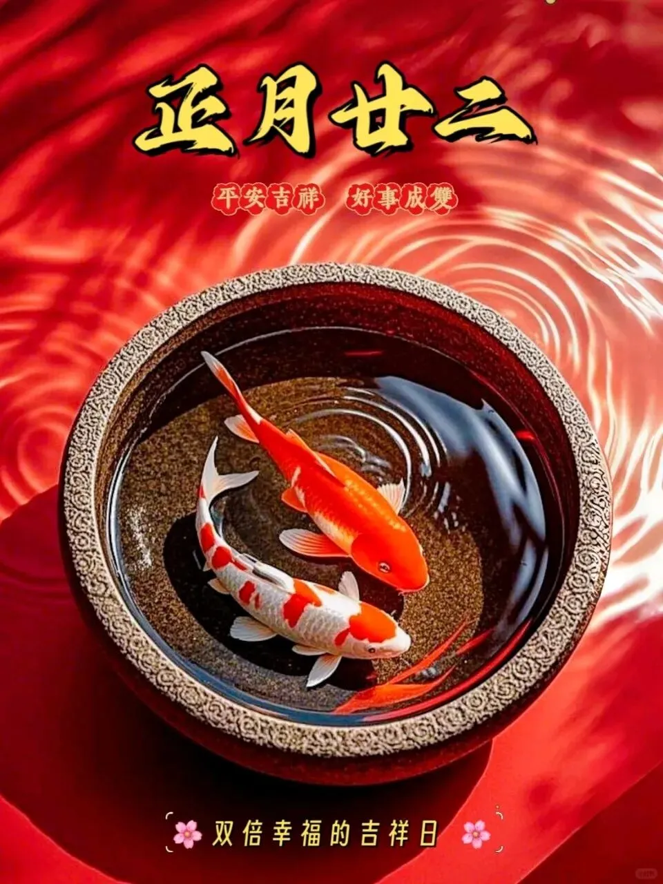 正月廿二,在这美好时刻,我衷心地祝愿你事事如意,心想事成。㊗️㊗️愿你的生活充满喜悦和安宁,㊗️身体健康,精神饱满。㊗️吉祥如意,万事胜意。正月廿二愉快!🌷🧡❣️🌱🎈☘️❤️🪴🎁🍃