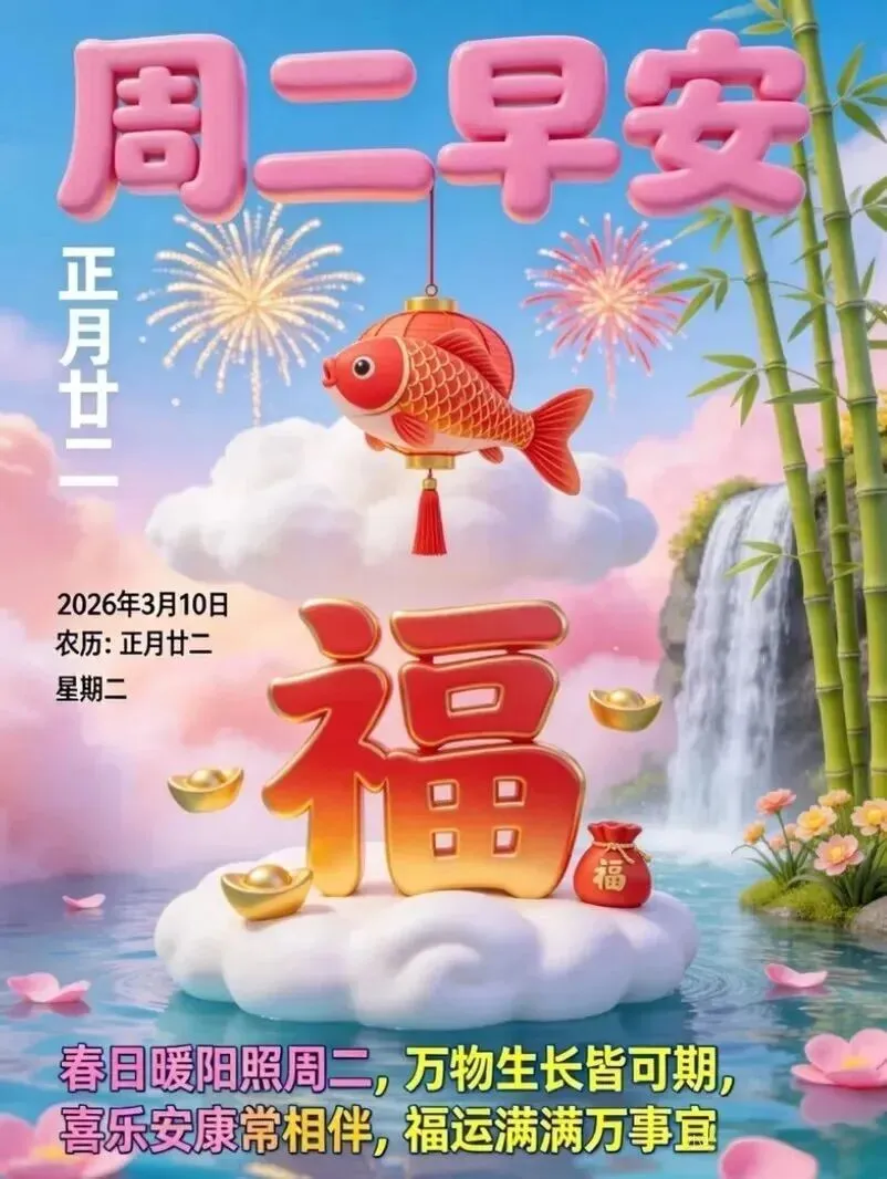 正月廿二,喜气依旧在。借这春光,许下双份的愿望:一愿远方亲友身体硬朗,二愿身边知己事业辉煌。愿生活像春联般红火,心情像春花般灿烂。周二愉快,愿您今日阳光万里,平安喜乐💛🌸