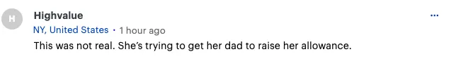 这不是真的,她只是想让她爸多给她些零用钱。