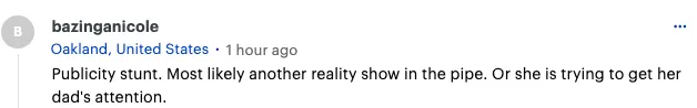 宣传噱头。很像是一场真人秀节目正在筹备中了,或者是她想要得到她爸爸的关注。