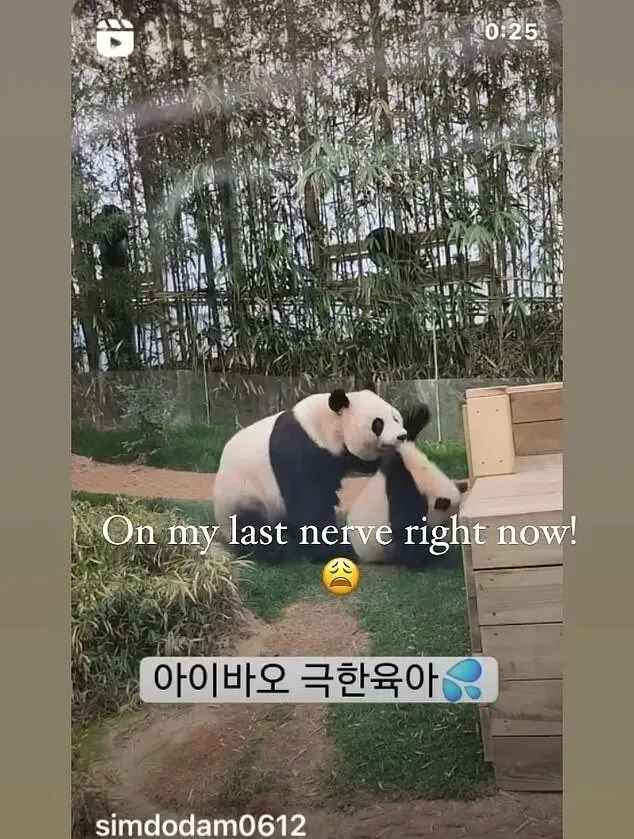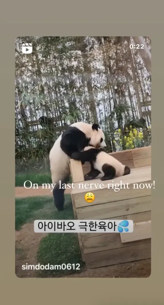 她在社交媒体上转发了一段视频(现已被删除),内容是一只大熊猫妈妈生气地叼走了自己的孩子,并配文称现在真的受够了!