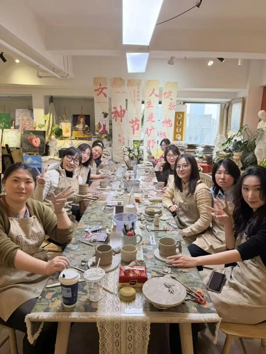 当细腻的陶泥在掌心旋转、升温,平日里严谨细致的“职场女神”们,瞬间化身为专注的“陶艺匠人”。