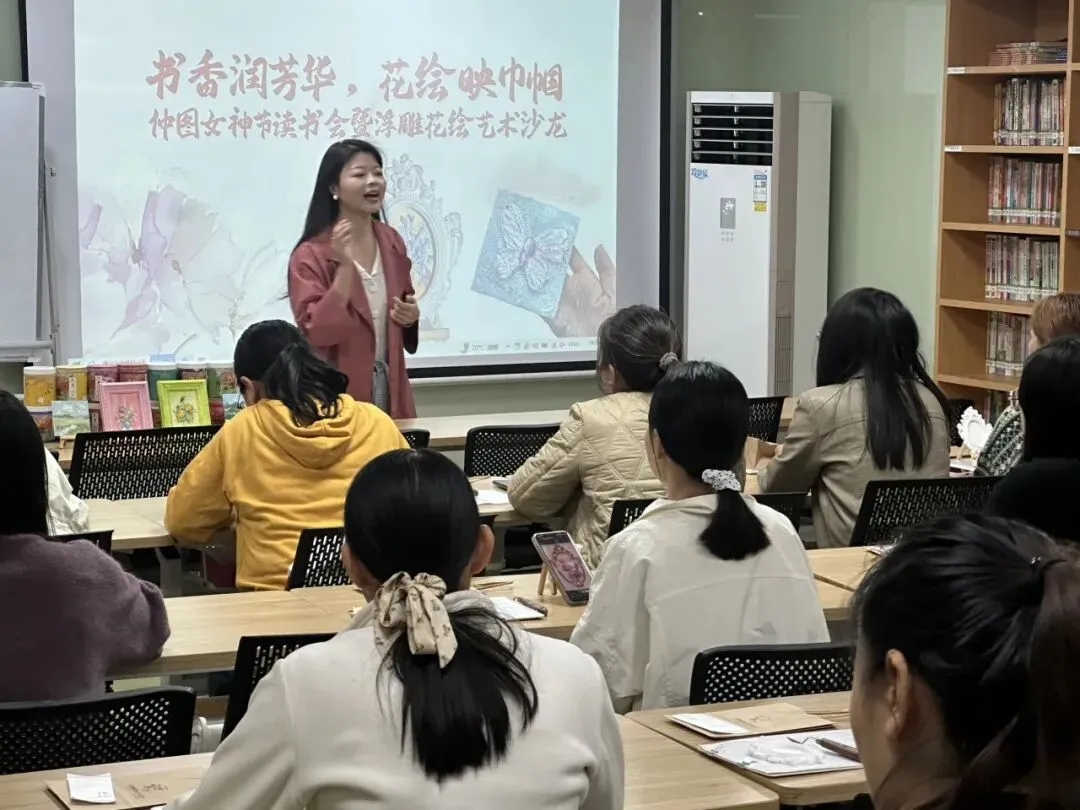 三月春风暖,书香伴芳华。为庆祝第116个 “三八” 国际劳动妇女节,丰富辖区女性精神文化生活,传递阅读与艺术之美,3月7日,仲恺高新区图书馆开展“书香润芳华,花绘映巾帼” 女神节读书会暨浮雕花绘艺术沙龙活动,以书香涵养气质,以艺术点亮生活,为女性读者献上一场兼具文化底蕴与美学体验的节日盛宴。