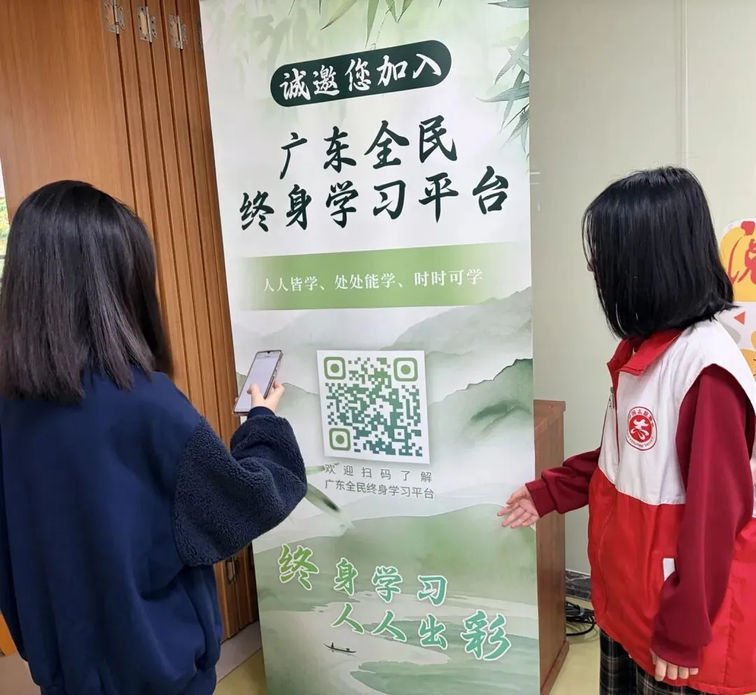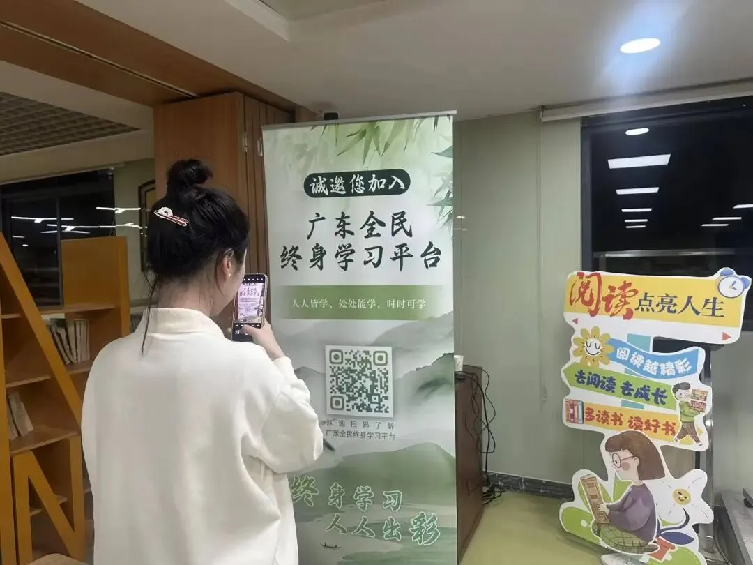 活动现场,工作人员向前来参与活动的读者介绍了“广东全民终身学习平台”的相关情况,引导群众扫码登录,指导操作方法、讲解平台特色课程,积极鼓励大家利用碎片化时间坚持学习、提升自我,让学习赋能美好生活。