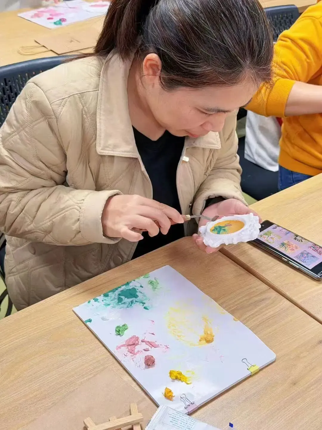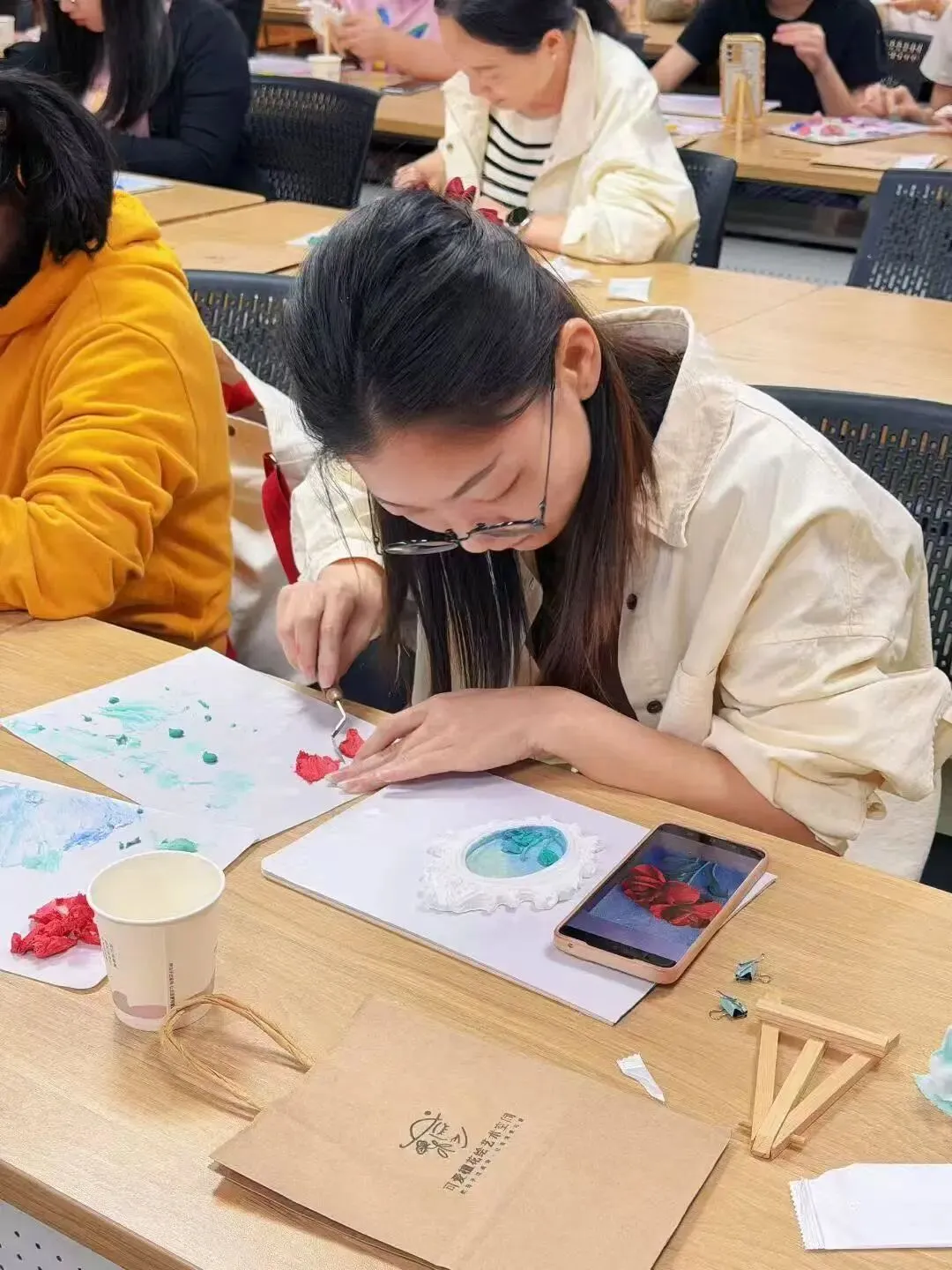 如果说阅读是心灵的修行,那么艺术便是生活的诗意。在浮雕花绘艺术沙龙中,大家沉浸于指尖创作的乐趣。在老师的耐心指导下,大家凝神勾勒、细心调色、精心雕琢,将对生活的热忱与对美好的期许,融入每一笔线条、每一抹色彩。一朵朵立体灵动、雅致鲜活的浮雕花缓缓成型,质朴的材料在巧手下焕发出艺术生机,每一件作品都承载着独特匠心,定格下独属于女神们的浪漫瞬间。大家在沉浸式创作中舒缓身心、陶冶情操,尽享艺术带来的治愈与美好。
