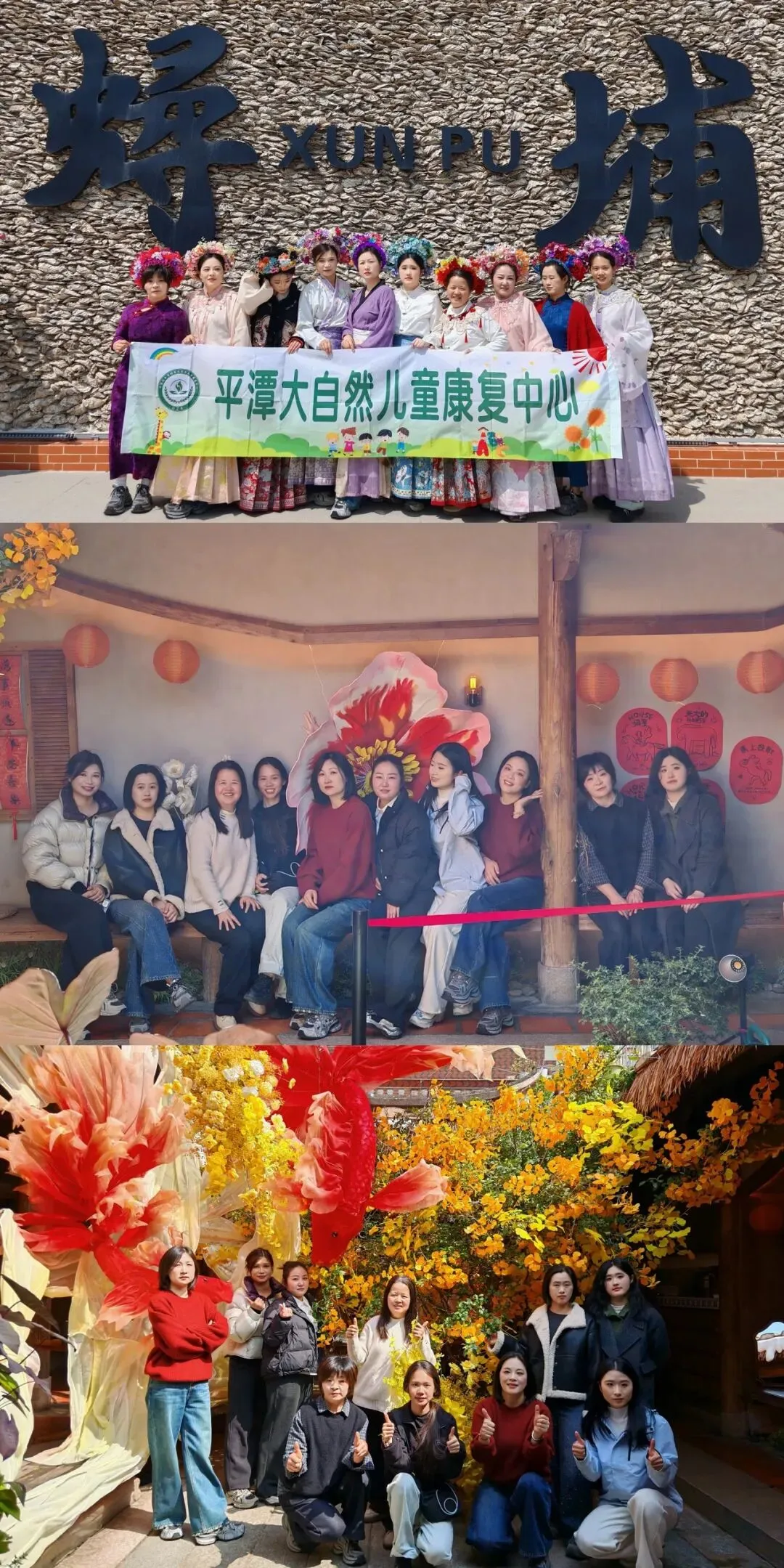 第一站,大家走进蟳埔渔村,解锁“头顶上的流动花园”。在当地非遗传承人的巧手下,一朵朵色彩斑斓的鲜花、一根根精致的簪饰,在女神们的发间绽放成景。个人写真灵动婉约,团队合影温馨美好,每一张笑脸,都绽放着属于大自然康复中心女神们的自信与芳华。