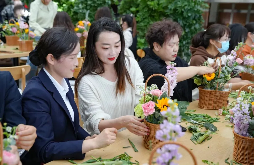 活动现场除了跳绳、抢凳子等运动环节,新增了插花拾趣、幸运女神“快乐盲盒”等内容,让第113个“三八”国际劳动妇女节在花香四溢、欢声笑语中拉开帷幕。活动特别邀请专业花艺讲师,从插花的渊源意义、插花艺术的基础知识、插花技巧等方面作了详细讲解和现场示范,大家兴趣盎然,享受着亲自创作的乐趣和插花艺术带来的快乐。看着一支支向日葵、康乃馨等色彩缤纷的鲜花,经过精心构思、悉心修剪,变成了一件件清雅别致的花艺作品,赏心悦目。