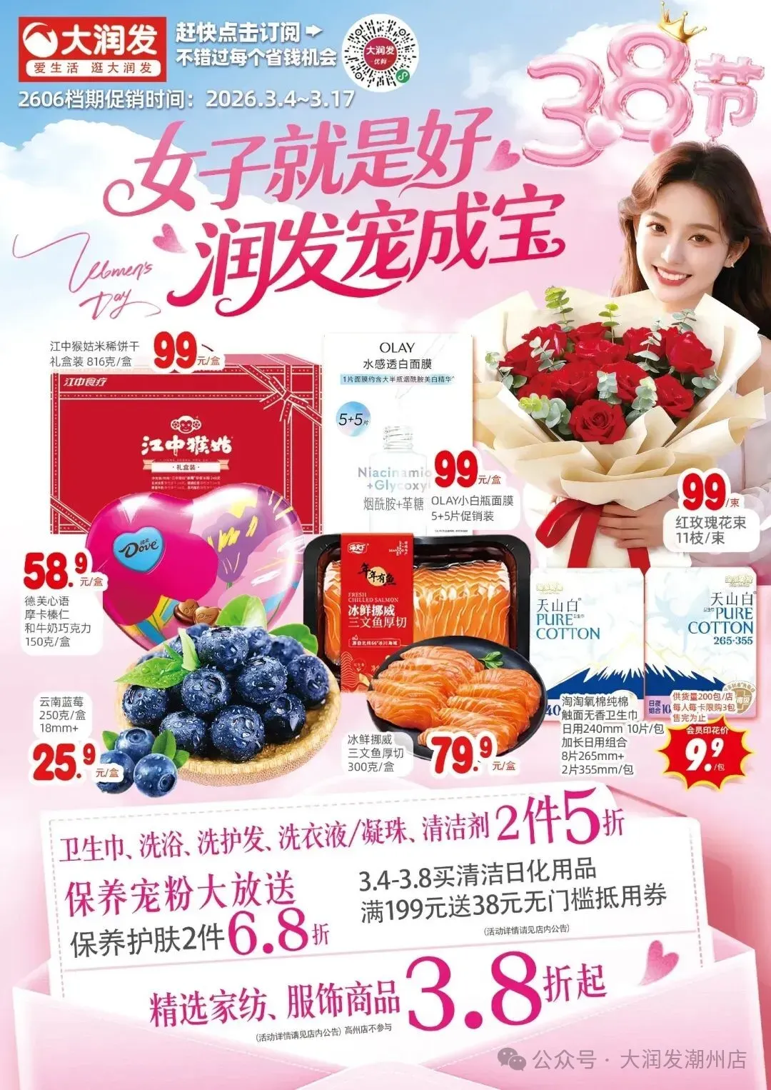 当前位置:首页>美女资讯>38女神节【潮州大润发】宠粉福利进行中~卫生巾、洗护用品、洗衣液等2件5折!
