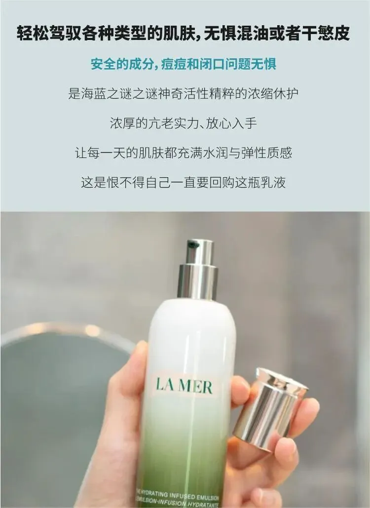 海蓝之谜精粹水主打润养保湿功能,让肌肤弹润光彩立现。它可以帮助修复肌肤屏障,让你的皮肤更强韧、更耐受外界侵袭。特别是在换季或者熬夜后,这款精粹水真的能给你满满的安全感。