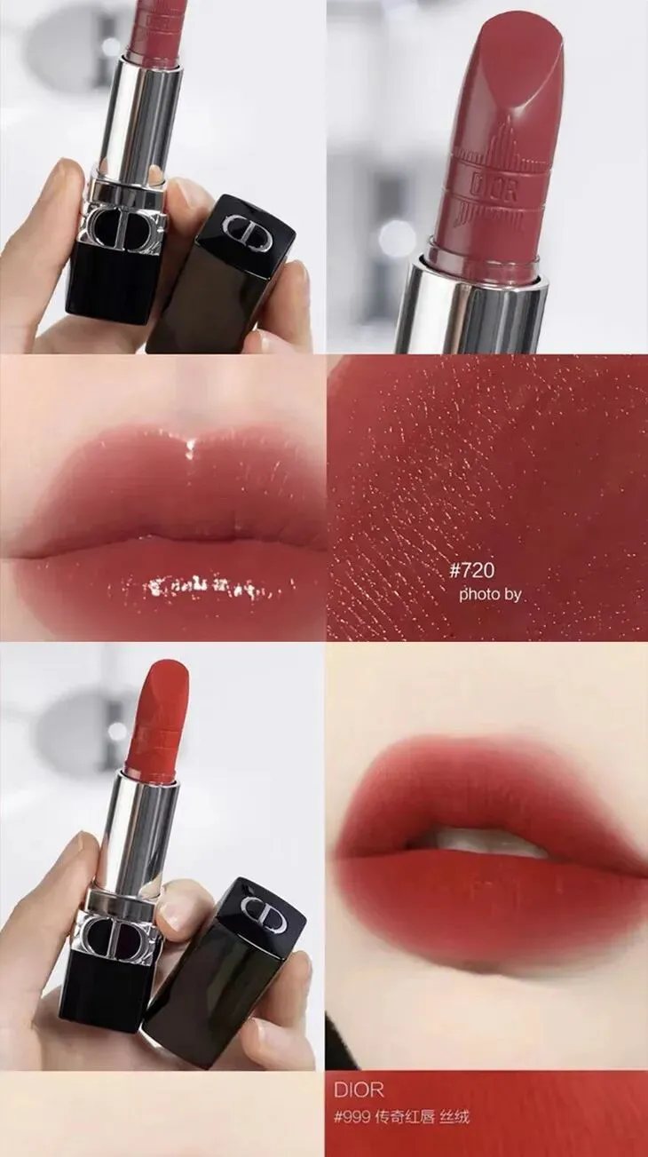 • Dior #720 丝绒质地口红(1.5g):浓郁的酒红色调,优雅中带着一丝复古,适合各种场合。丝绒质地让唇妆更加高级,同时滋润双唇,不易干燥。