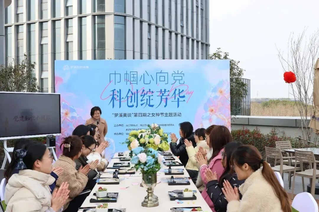 春风有信,芳华有约。为致敬园区内每一位在科创领域绽放光彩的女性力量,继3月6日为企业女性工作者送上鲜花与节日祝福后,3月9日下午,宜创党支部牵头举办的「梦溪美谈」第四期之“巾帼心向党·科创绽芳华”女神节主题活动4 栋 3 层企业服务中心空中露台花园圆满落幕。园区女性从业者们齐聚一堂,在指尖生趣中邂逅美好,在欢声笑语中共度专属时光。