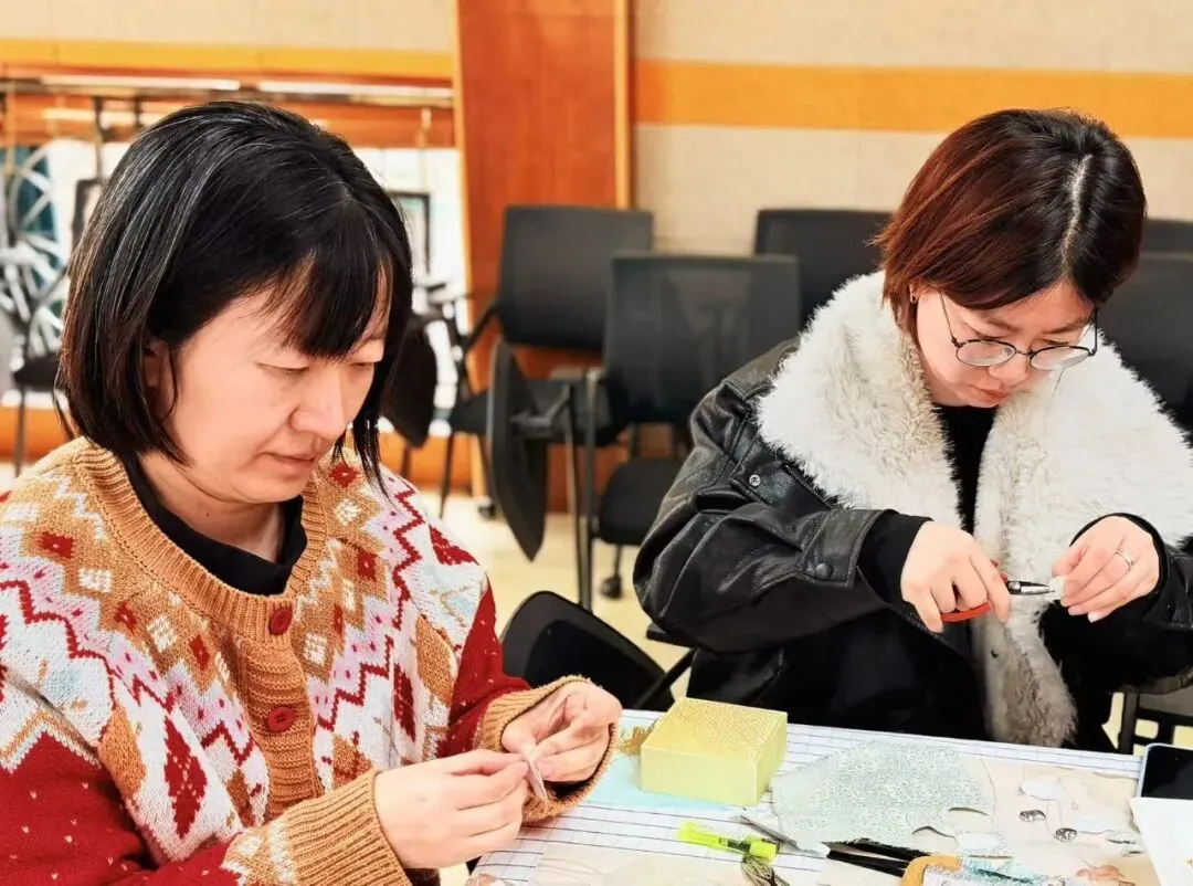 非遗之美,亲手方可感知。本次活动特别邀请专业老师现场指导,带领教师们开启宋锦挂件制作的匠心之旅。