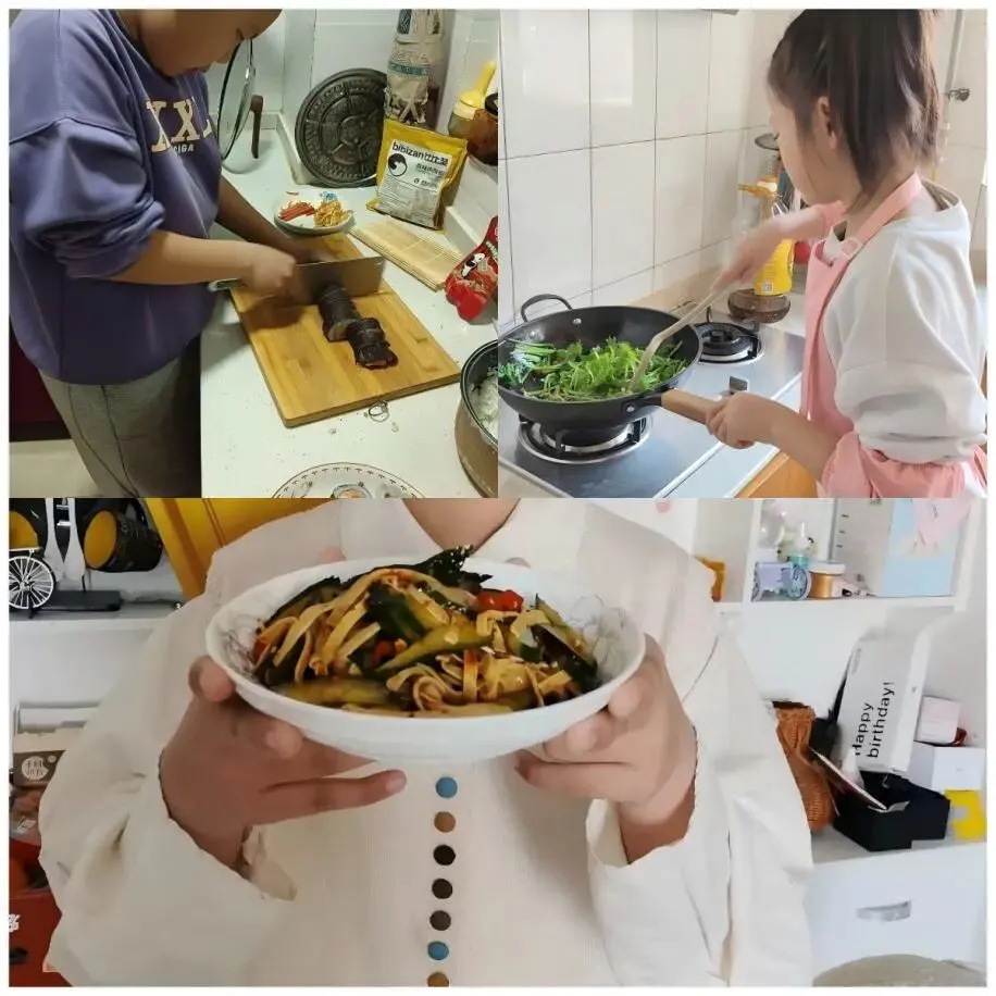 灶台显心意,美味共分享。五六年级的学长学姐们在家长的指导下,走进厨房学做简单菜肴与甜点,水果沙拉、煎蛋……一道道亲手制作的美食,是成长的见证,更是爱意的表达。同学们还录制感恩小视频,将心中的感激亲口诉说,让爱的话语萦绕在长辈耳畔。