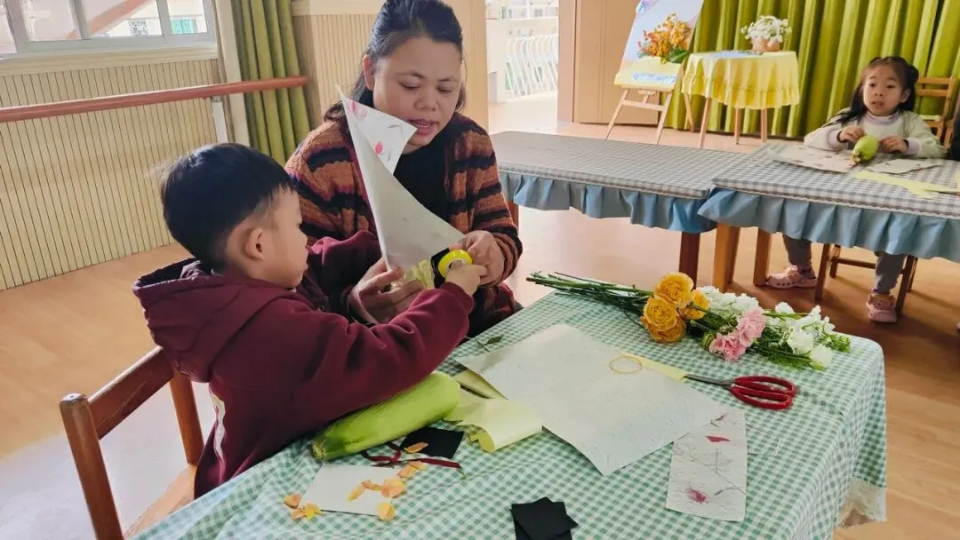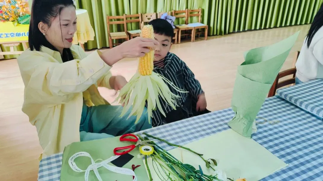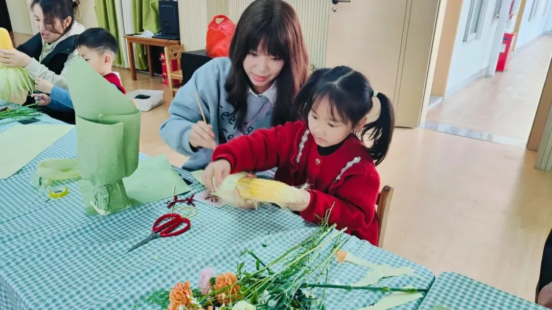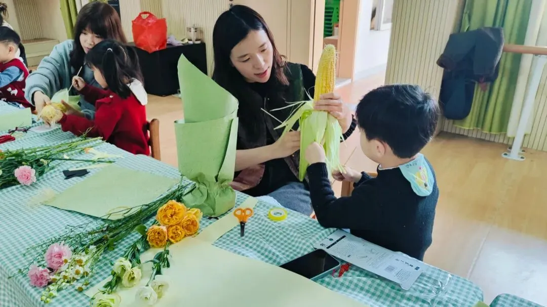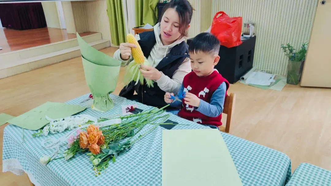 最美的花只为你开,最真心的问候只为你说,为了让膳委会妈妈们度过一个温馨浪漫的“三八”妇女节,幼儿园特地为各位妈妈们精心准备了一场亲子花艺活动,在花艺老师的指导下开启一场浪漫的玉米花束制作。希望所有的妈妈心中充满阳光,生活充满希望。