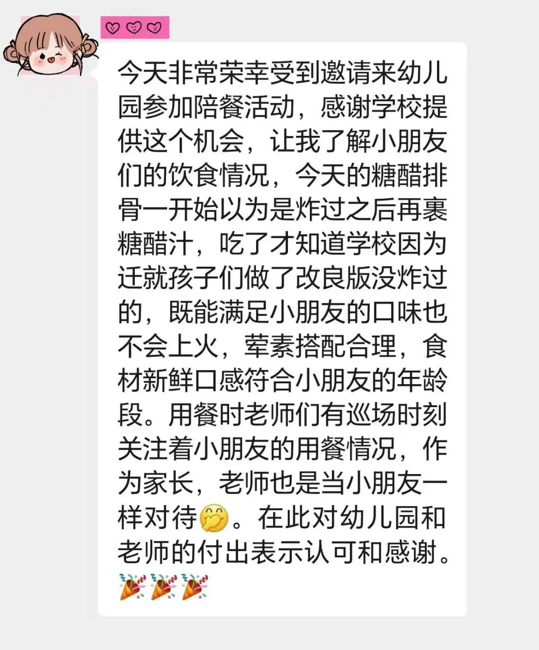 家长们通过亲身体验,不仅全面了解到幼儿园的膳食管理工作,更见证了孩子们在集体生活中的成长蜕变,在家长们的监督与建议中更进一步优化膳食服务。