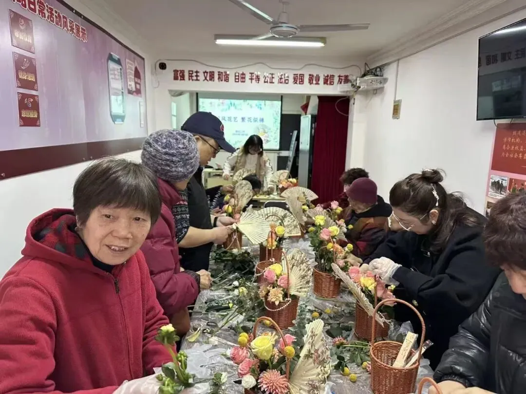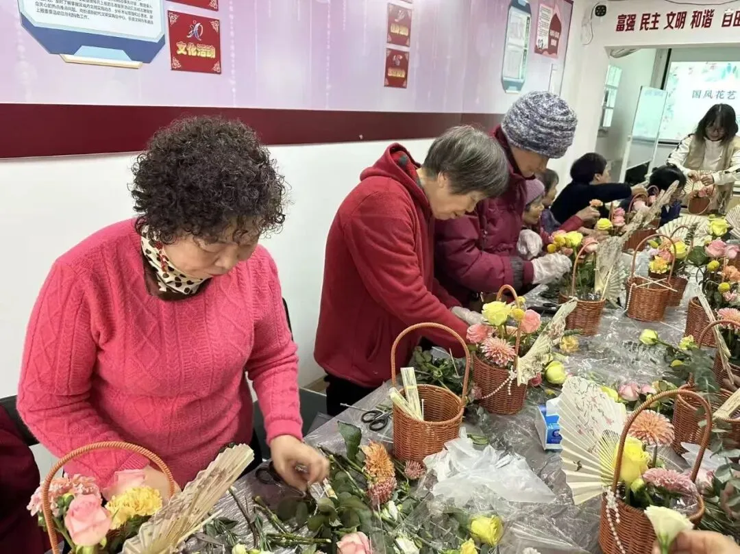 社区开展“巾帼绽芳华,花艺悦生活”手工新中式抱抱桶制作活动,旨在弘扬传统东方美学与现代花艺相结合,打破传统插花的繁琐,更贴合日常审美与摆放需求。居民可挑选心仪的花材,搭配古典雅致的配饰,亲手打造属于自己的新中式抱抱桶。