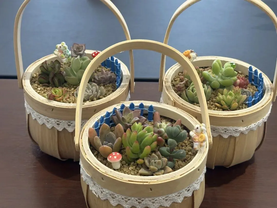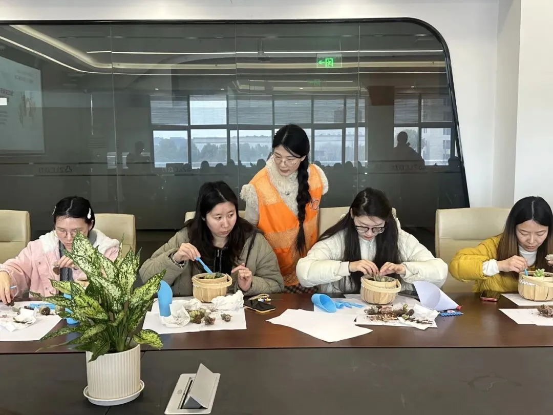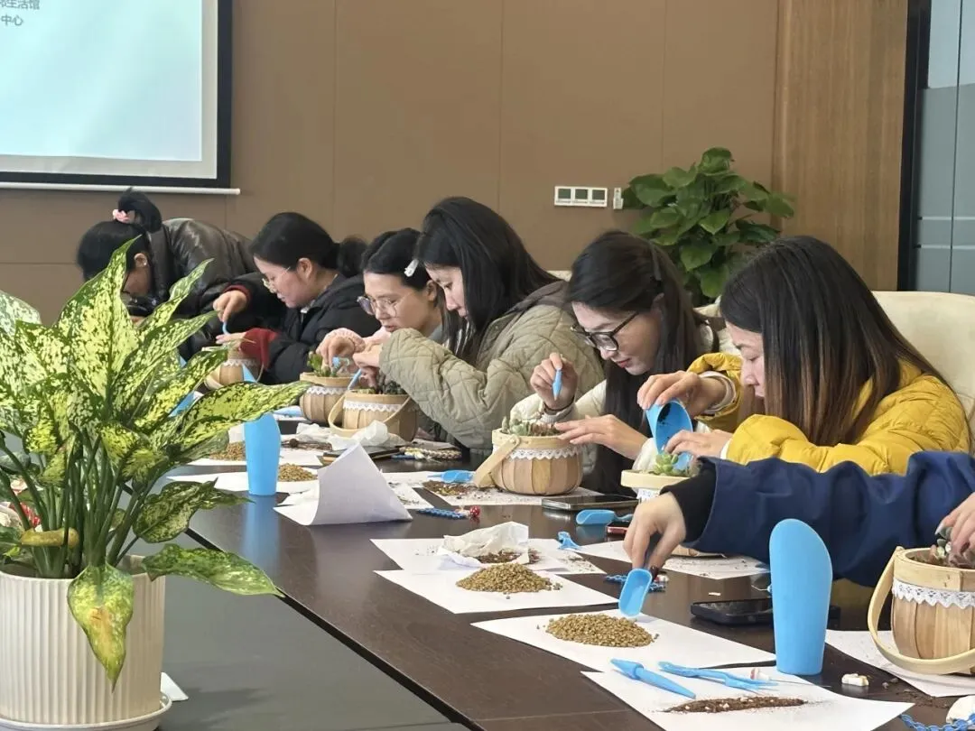 在多肉DIY的活动现场,大家精心挑选各自属意的多肉植株与装饰石,填土、栽种、造型、铺饰,一步步打造专属 “迷你花园”。一株株饱满可爱的多肉,在巧手下错落成景,既是春日里的小美好,更是彼此陪伴、互助同行的温暖见证。