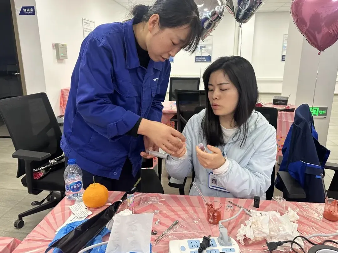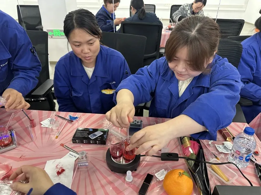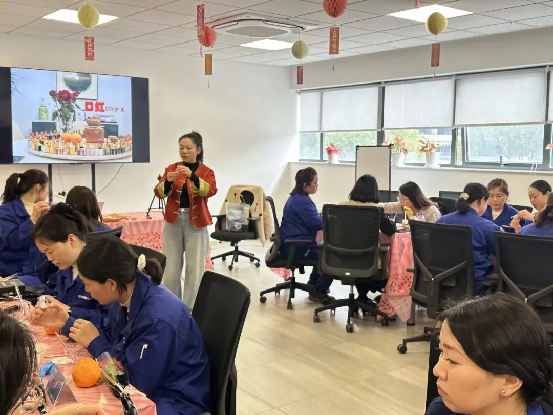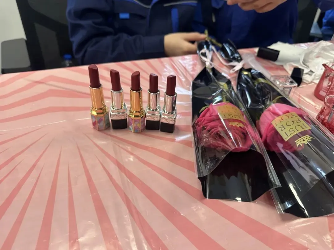 在口红制作的活动现场,女神节的氛围感直接拉满。用一支专属于自己的口红色号,点亮职场与生活的每一个瞬间。职工们精心调配适合自己的口红色号,经过搅拌、加热、注模直至冷却成型,职工们纷纷化身“美妆大师”。当一支支质地温润、色彩雅致的手工口红完美脱模时,现场响起了阵阵欢笑与赞叹。