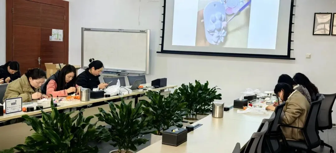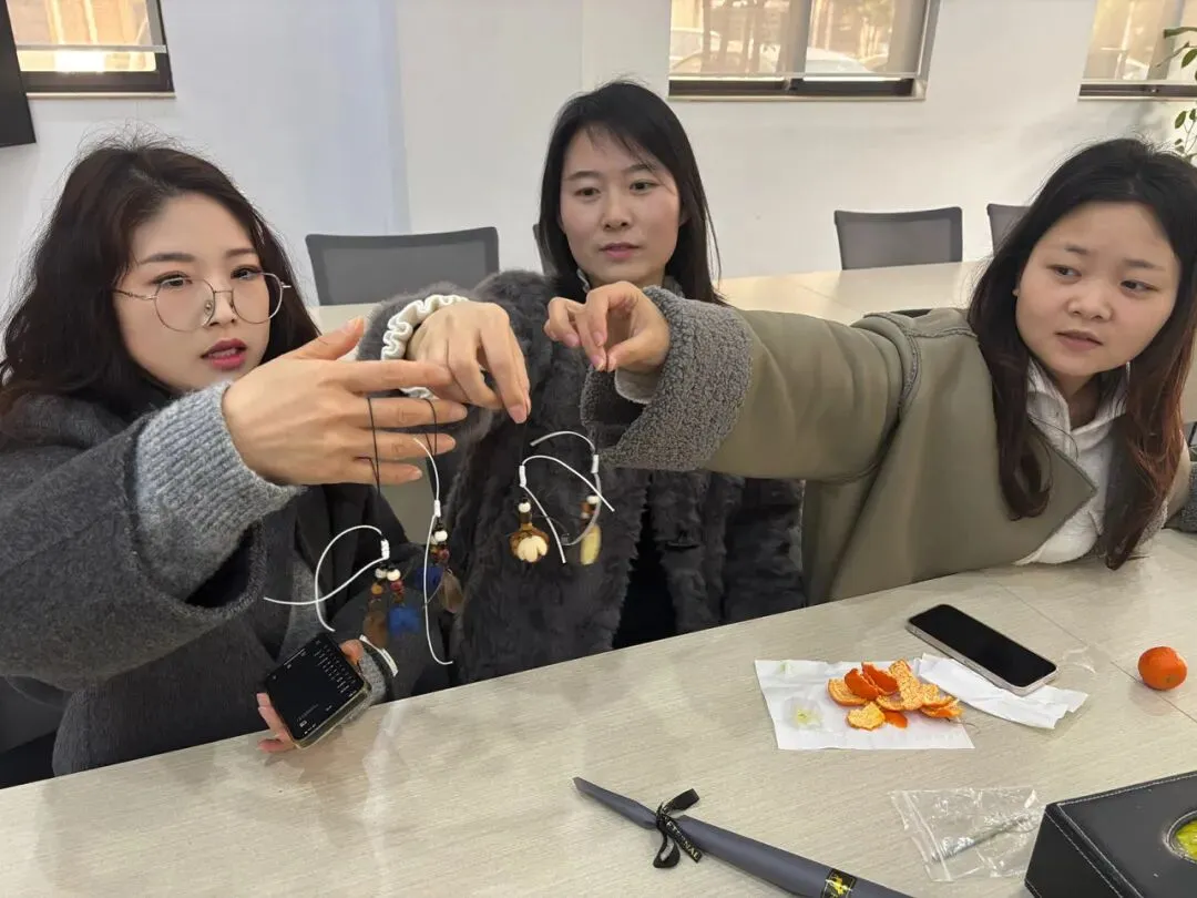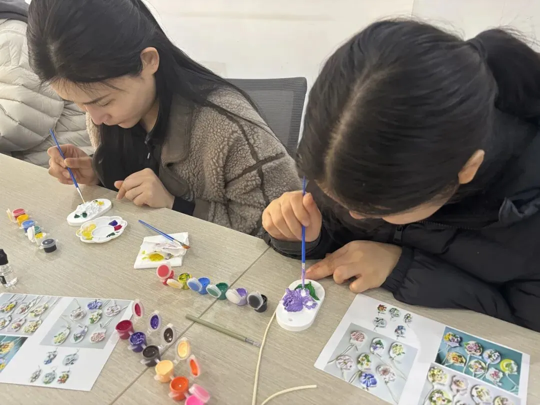 本次我们准备了石膏花牌和中药挂件DIY,小姐姐们一坐下来就沉浸其中,完全忘了时间。