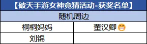 【获奖名单】女神竞猜活动获奖名单来啦!快来看看中奖名单里有没有你~