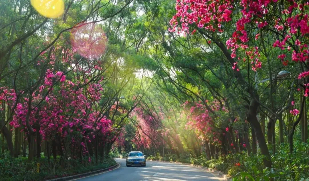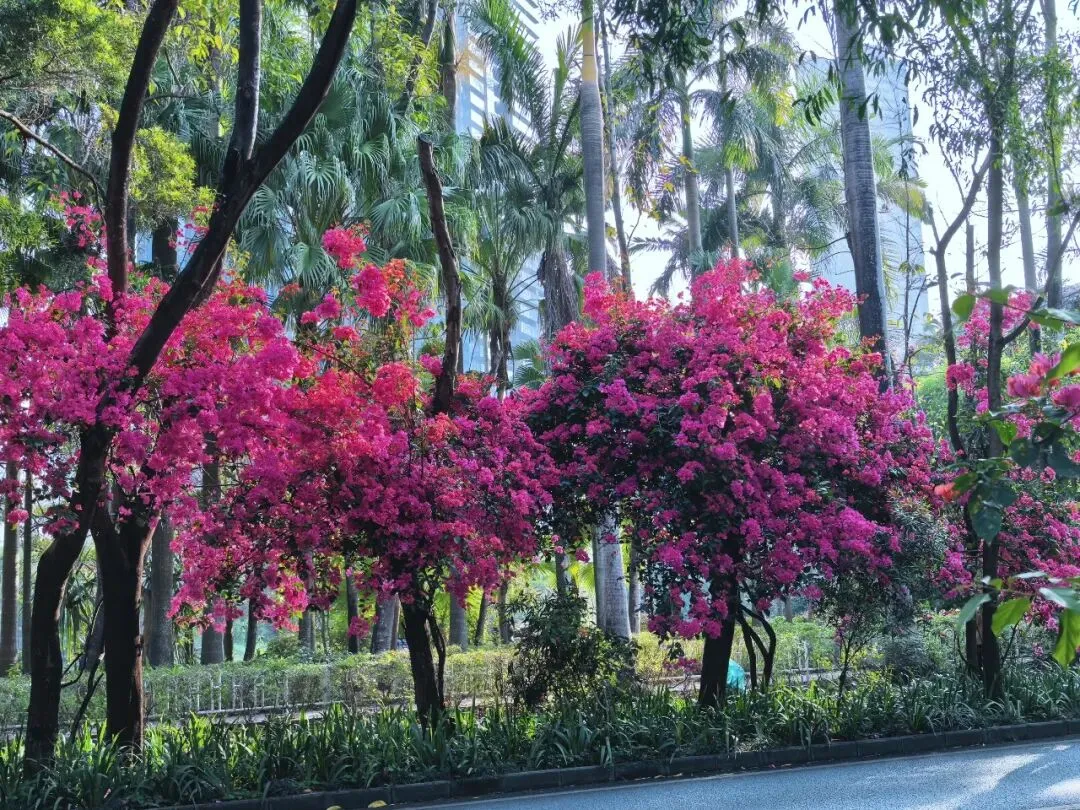 正值簕杜鹃绽放的季节,大家一同赏花奔跑