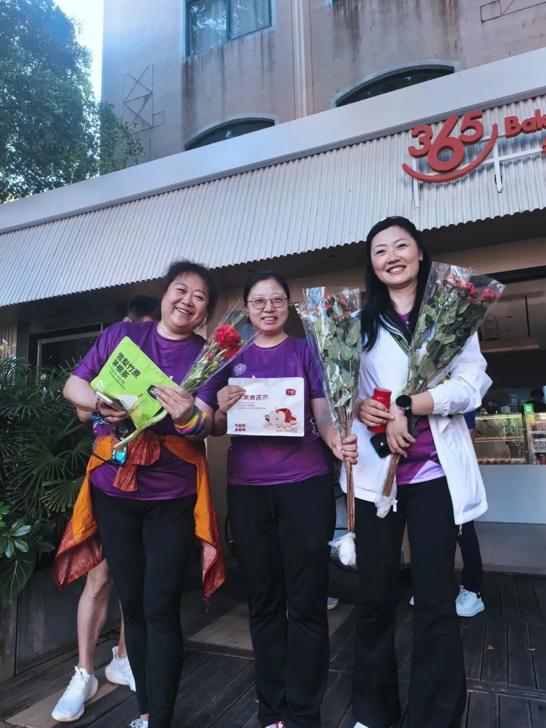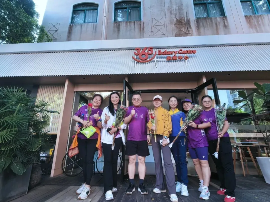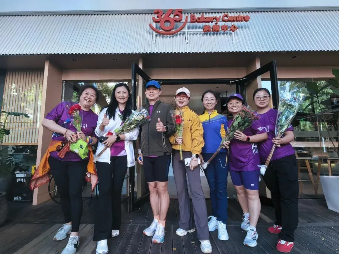 大家刚冲过终点、还微微喘着气,就被校友师兄热情地招呼到附近的面包店——原来,师兄早已预订好一炉刚出炉的热面包,请大家品尝!