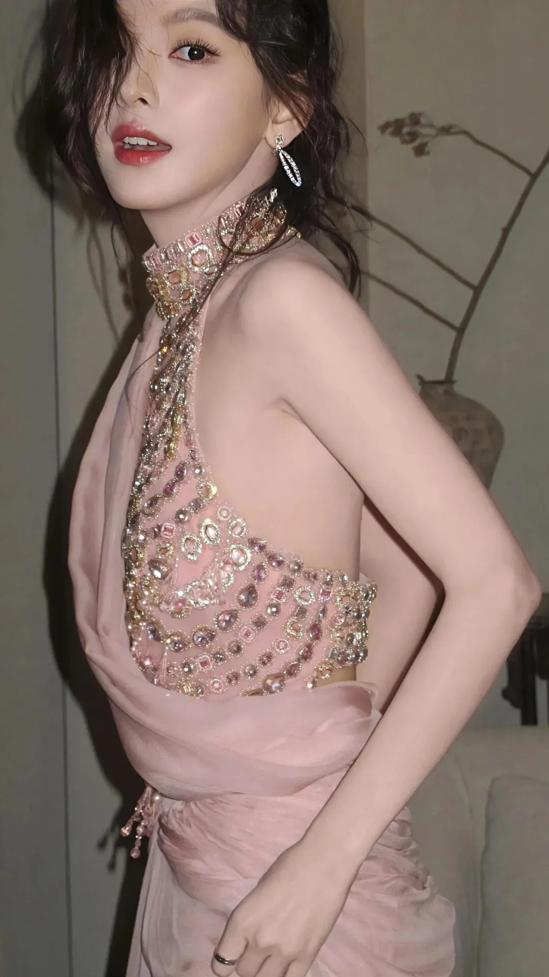 挂脖设计勾勒出精致锁骨与流畅肩线,背后大片留白,展露光滑如玉的美背,每一寸肌肤都在诉说高级的性感。