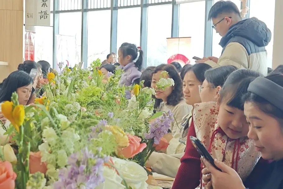 3月7日上午,活动参与人数近百人。活动伊始,花艺师从选材、配色、造型到意境营造,将东方插花艺术中蕴含的古韵与哲思娓娓道来。