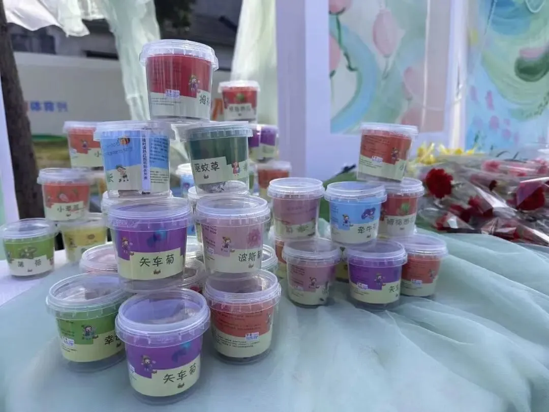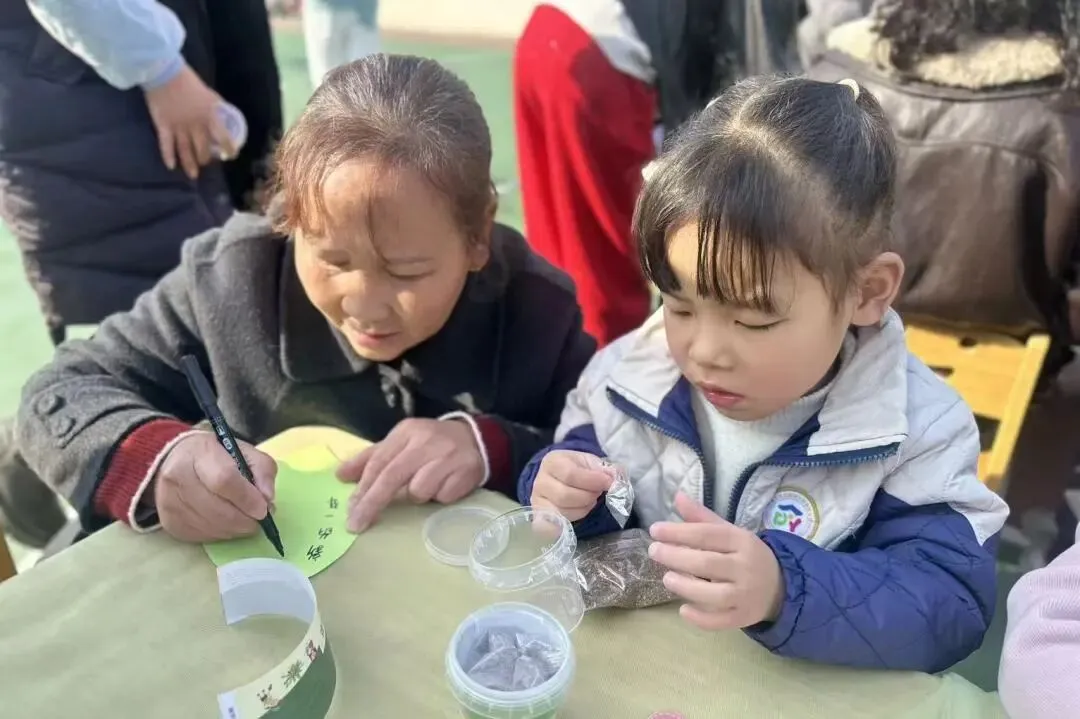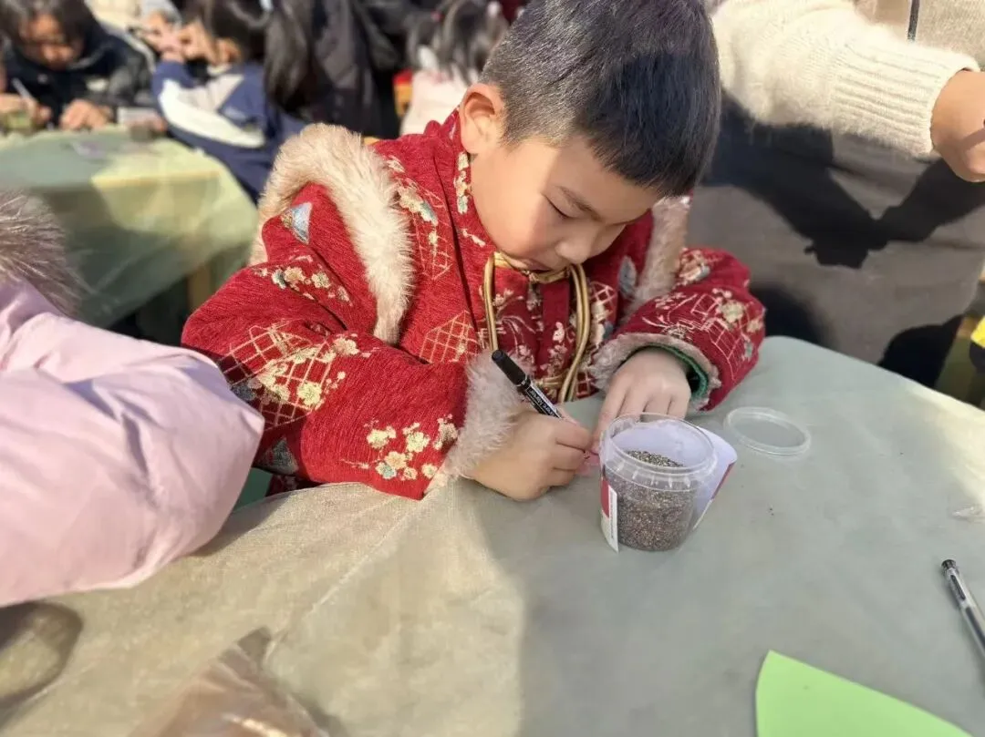一抔泥土,一盆新绿。大家领取桌上的小盆栽开始制作专属的绿植,并挂上亲手设计的认养牌,那些稚嫩的祝福,成为了这个春天里,独一无二的幸福印记。