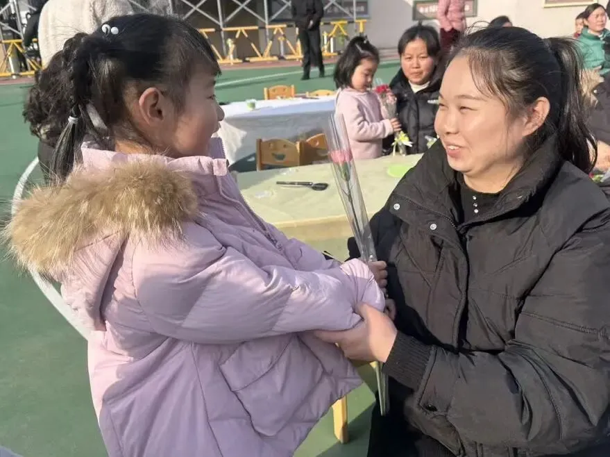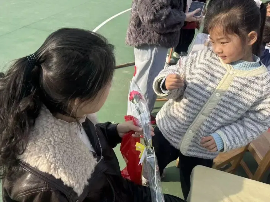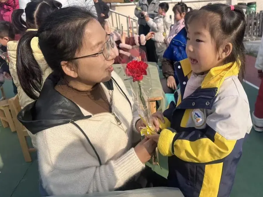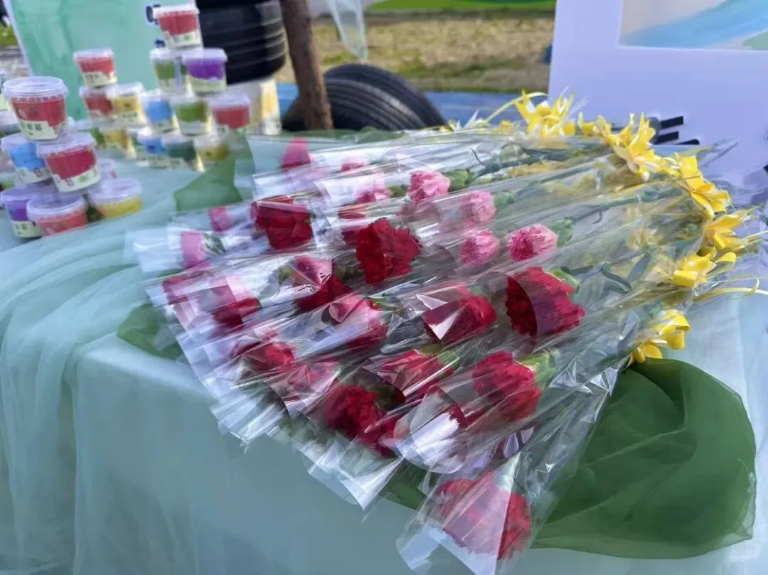 以绿为名,共赴未来。一场美好的护绿仪式即将落幕。孩子们将代表爱与感谢的康乃馨送给妈妈,表达自己对妈妈最真挚的爱与深深的感谢,妈妈们的脸上都露出了幸福的笑容。