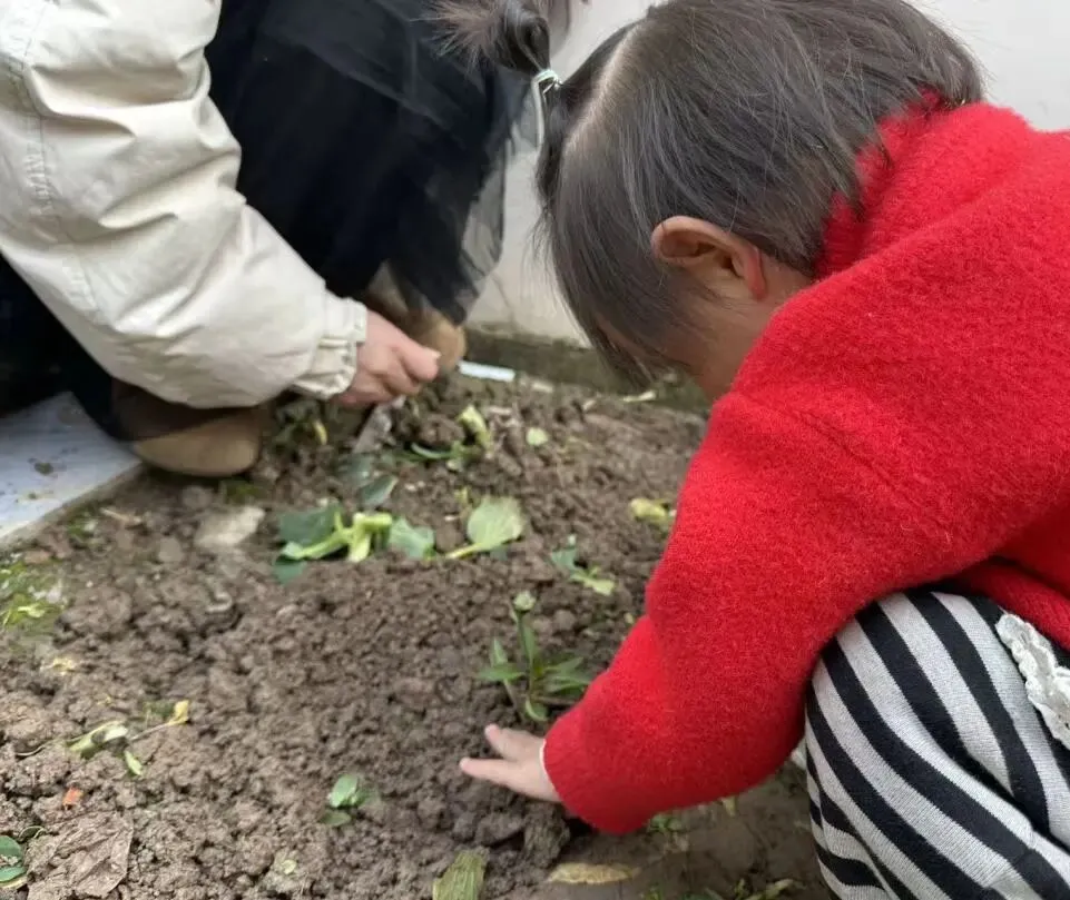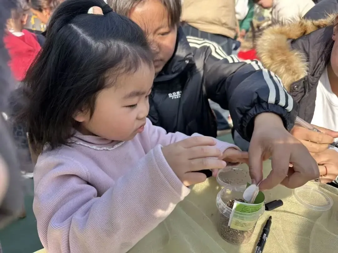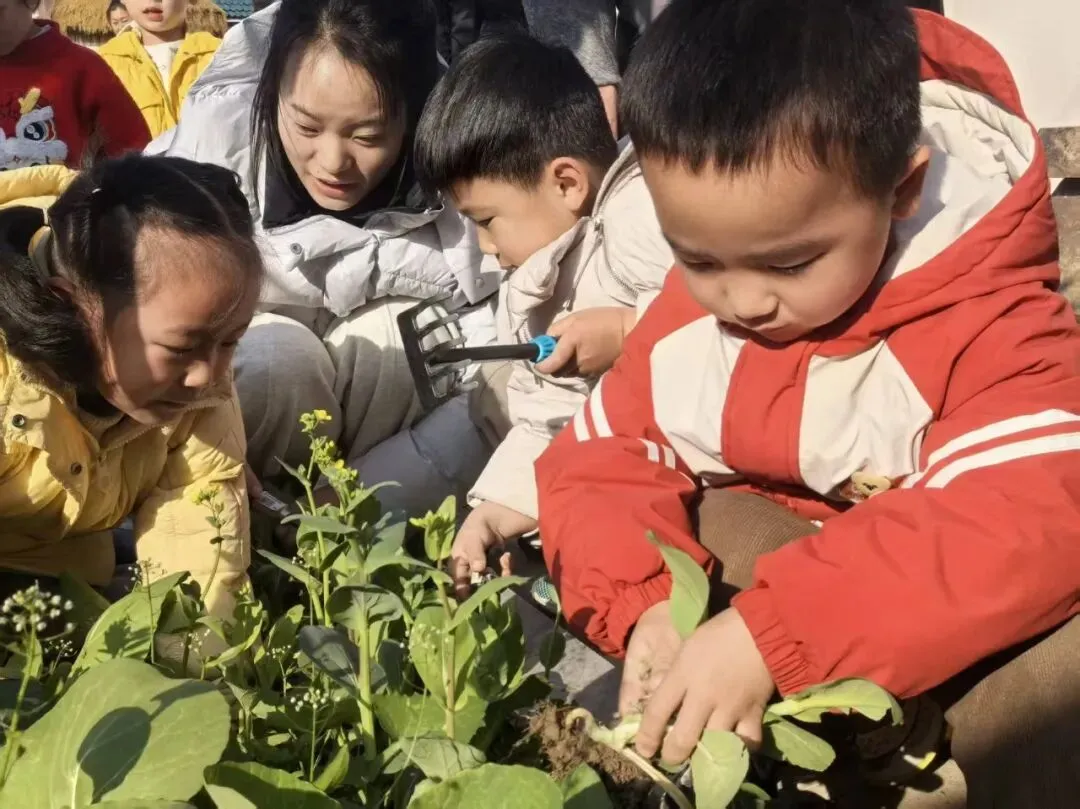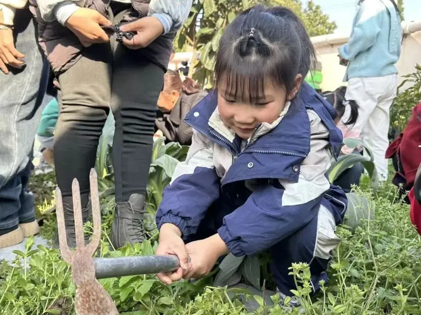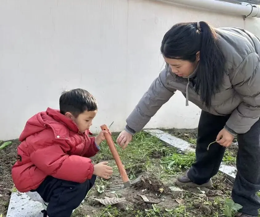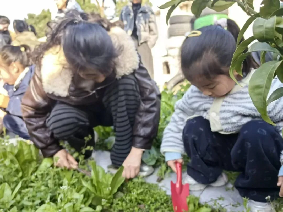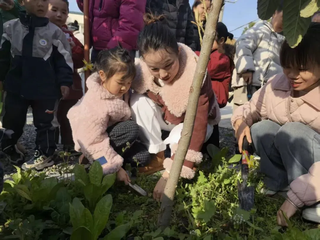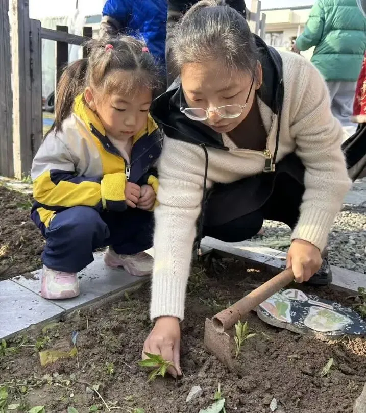 亲子同心,指尖生绿。在种植场地里,每个家庭都化身“园艺家”。除草锄地,宝贝小心翼翼地填土放苗,妈妈温柔地扶正压实,分工协作。